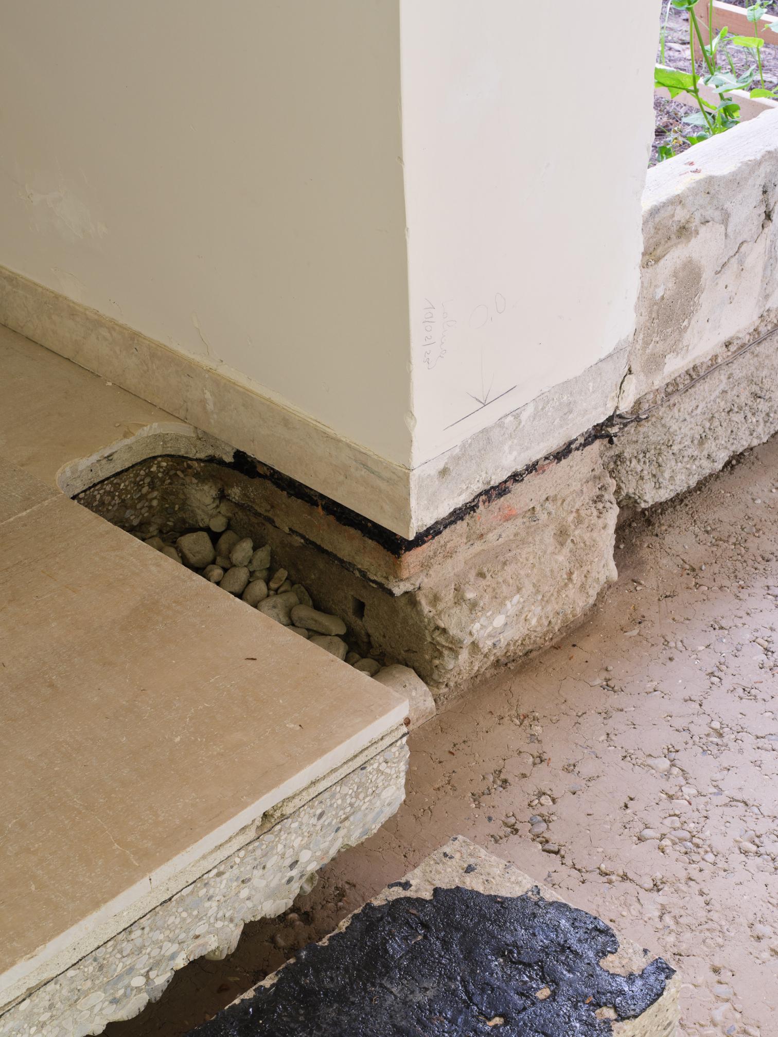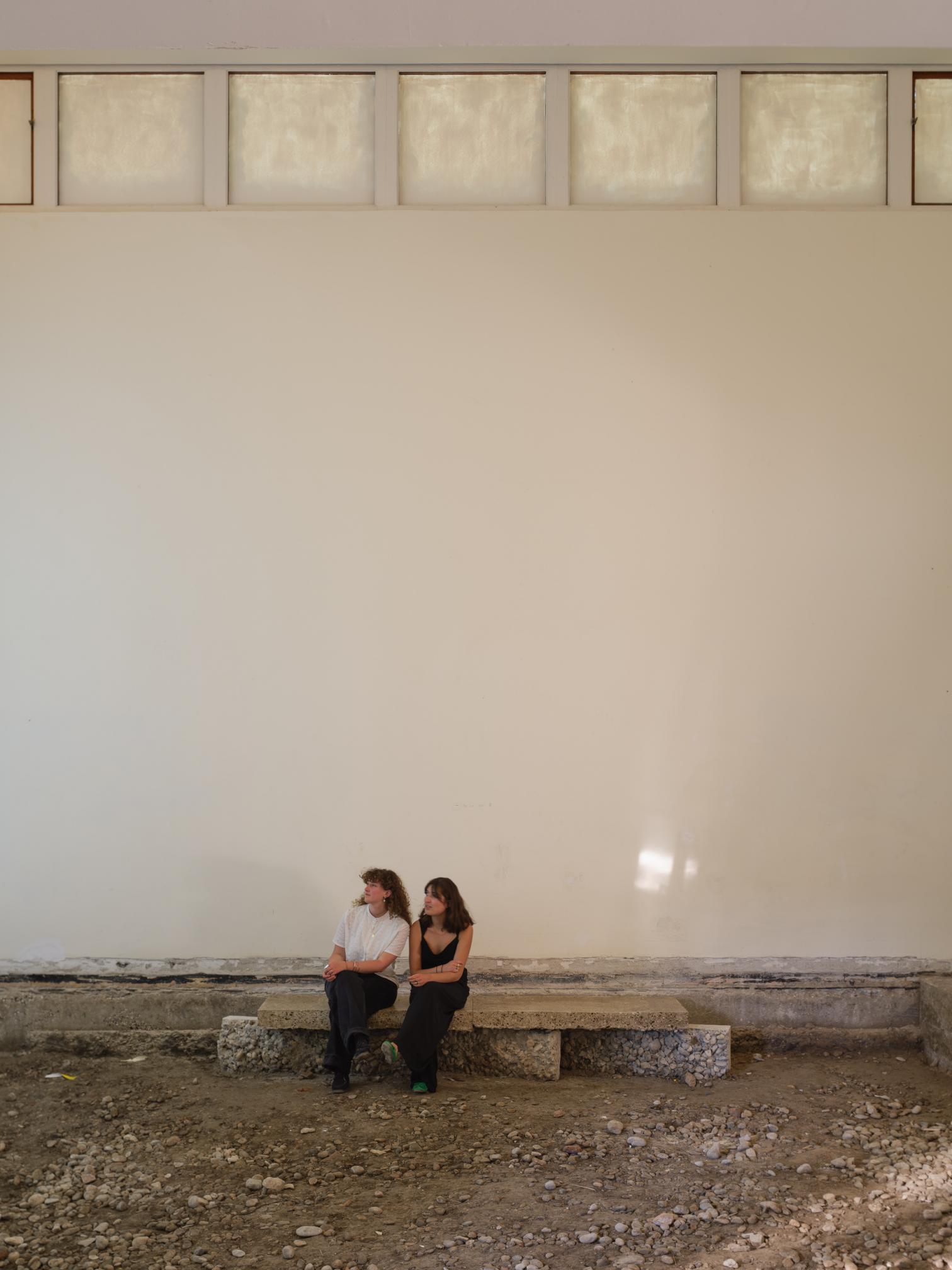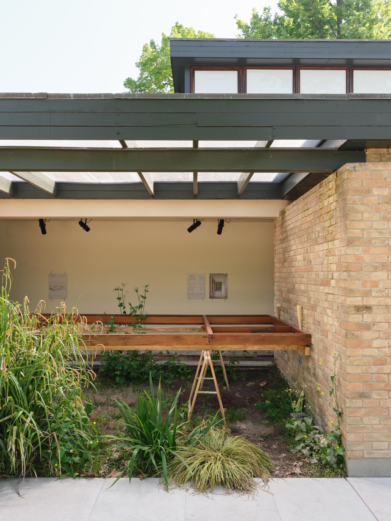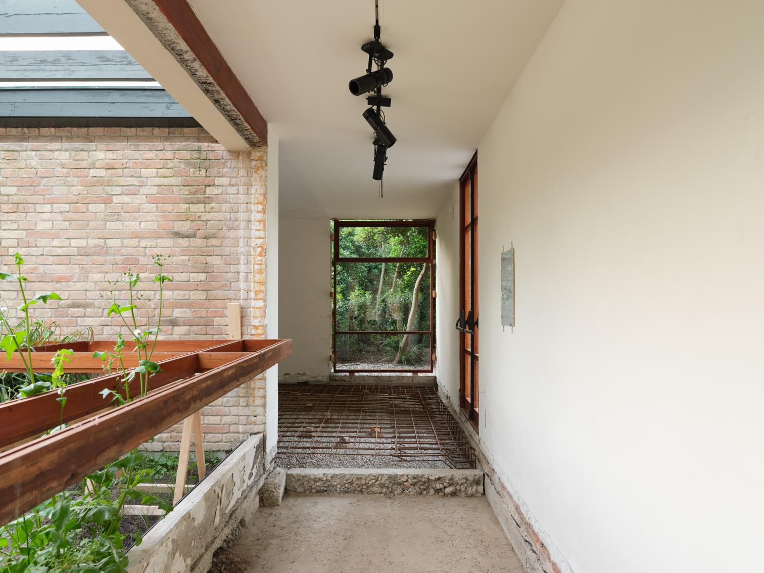 Iniciadas las labores a finales de 2024, mientras dure la Bienal los visitantes tendrán la sensación de entrar en una reforma a medio hacer, casi como en una pausa de los albañiles. Por los rincones se amontonan los escombros, las armaduras, las carpinterías desvencijadas. En las partes sin pavimento, el suelo que se pisa es irregular y queda centímetros por debajo de la cota de calle. Y, sin embargo, aquí no hay ni polvo, y ninguna operación es azarosa: esto no deja de ser una exposición. Por las salas en distinto estado de desmontaje se traza un recorrido cuidado donde bancos, rampas, peanas y una mesa de muestras se han diseñado ingeniosamente con los propios materiales de la restauración: recursos, en palabras del comisario, ‘hiperlocales’.