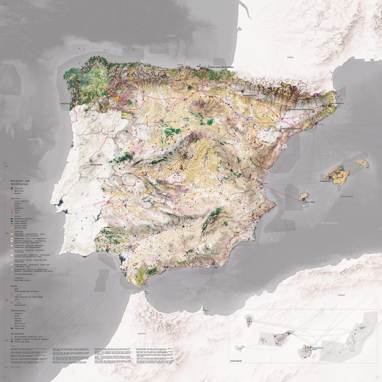 Otra de las mejores cosas que deja el pabellón es su legado: solo un puñado de algas baleares, los tres pinos gallegos utilizados para los soportes y una cartografía que conecta grandes infraestructuras y fuentes materiales con los proyectos expuestos y sus artífices. Ojalá estos debates sirvan también para que pronto asistamos a bienales sin externalidades y en cierto equilibrio con el territorio que las alberga.