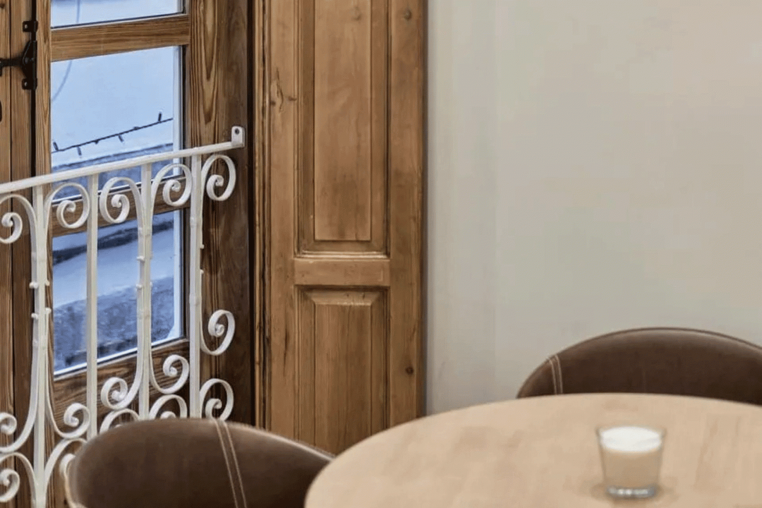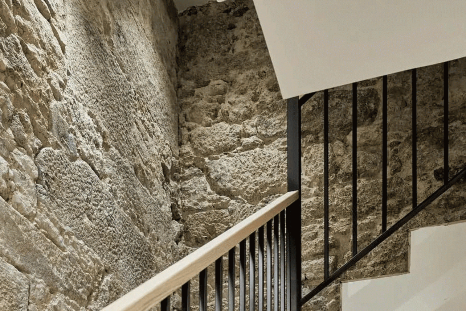 Uno de los aspectos más destacados del proyecto ha sido el respeto por los elementos arquitectónicos históricos. En ciertas zonas se ha mantenido la piedra vista original, aportando una sensación de autenticidad y solidez que conecta con la historia de la construcción. Asimismo, se han restaurado las galerías originales, recuperando las ventanas de madera de tea y sus contraventanas, además de conservar la elegante balconada de forja que caracteriza la fachada del edificio.
