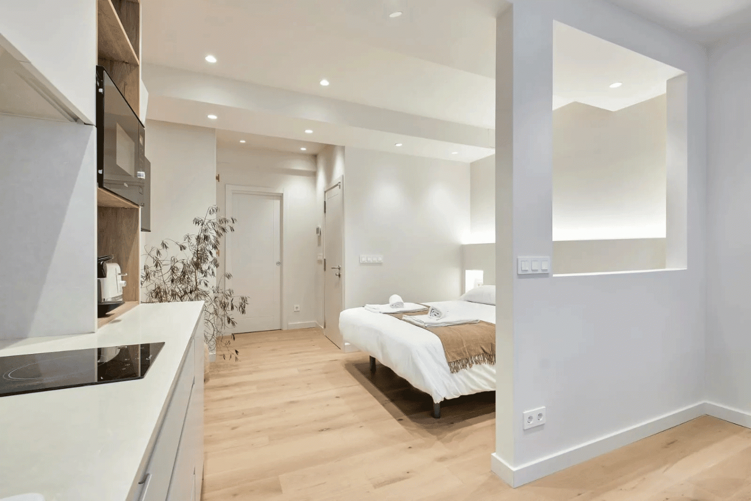 La reforma abarcó todos los aspectos de la estructura y funcionalidad de los apartamentos. Desde la actualización de las instalaciones eléctricas y sanitarias hasta la renovación de los suelos, cocinas, aseos e iluminación, cada detalle ha sido meticulosamente trabajado para ofrecer espacios modernos y prácticos para el turista sin perder el encanto original del edificio.