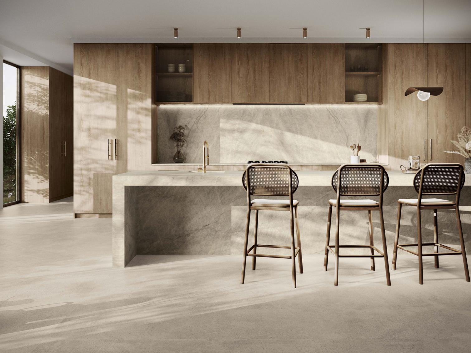 VENUX, marca castellonense que irrumpe en el mercado con una propuesta innovadora de piedra sinterizada en el segmento del lujo accesible, ha presentado sus últimas colecciones y su gran novedad TAJ MAHAL, en la feria CERSAIE 2025.