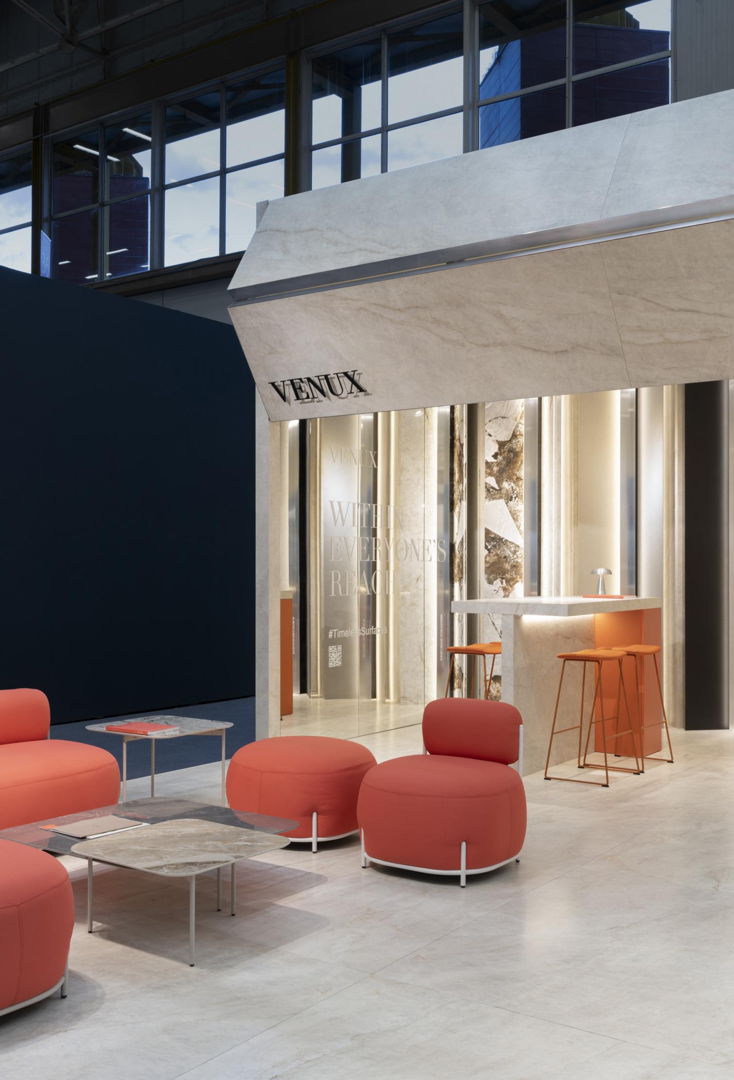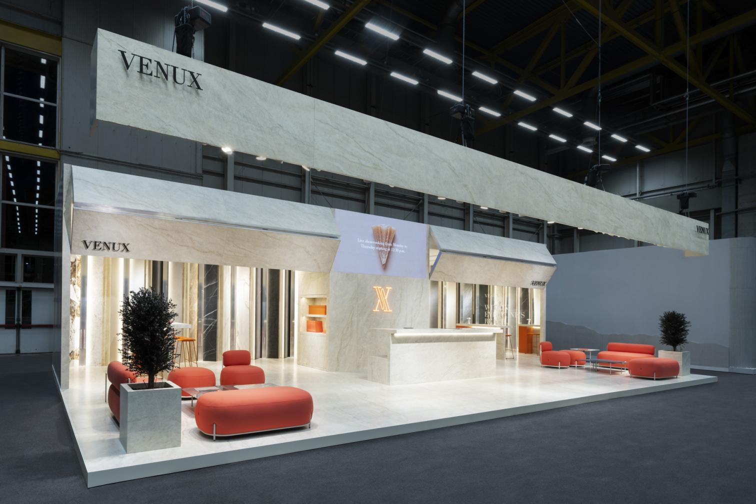 Espacio expositivo VENUX para la feria CERSAIE 2025 , diseñado por Estudi{H}ac. Imágenes: VENUX, Estudi{H}ac