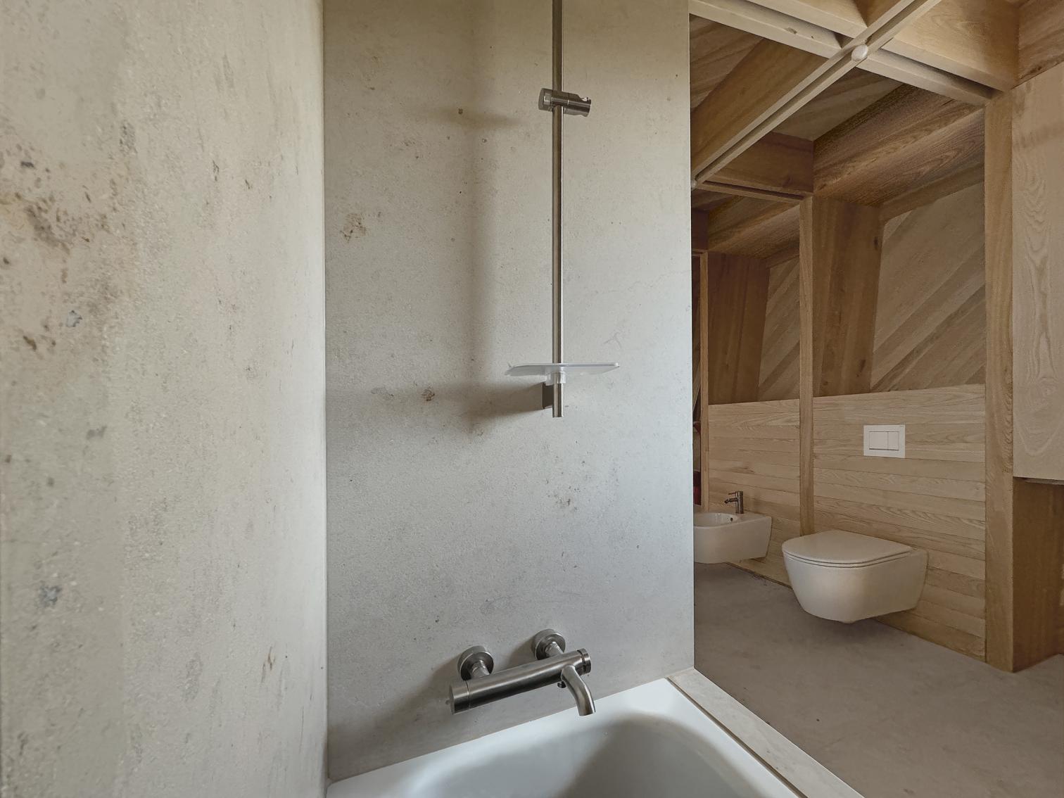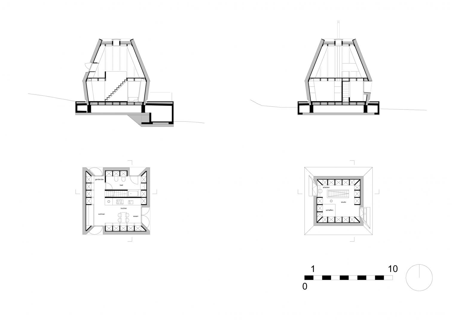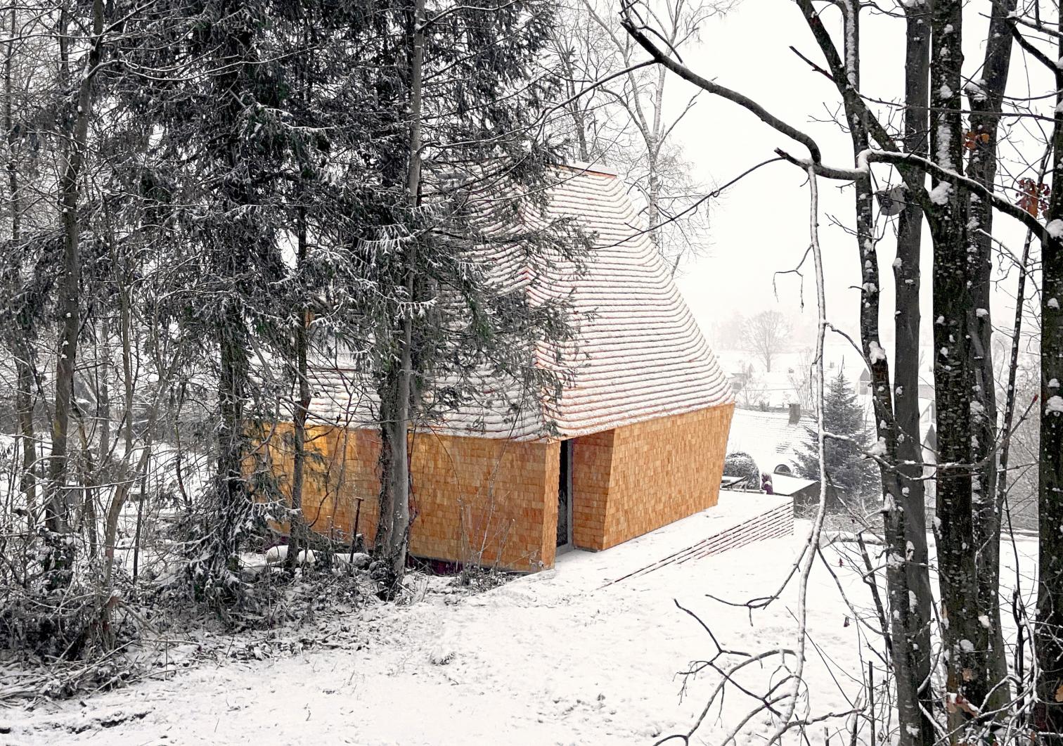 La casa está construida íntegramente en madera cerca de Augsburgo (Baviera), con vistas del valle de Schmutter. Desmontable, de dos plantas y con 7 metros de altura, la vivienda ha sido diseñada con un enfoque meticuloso en cada detalle, garantizando la máxima calidad constructiva mientras se minimiza la generación de residuos. Para lograrlo, se ha evitado el uso de elementos encolados, recurriendo exclusivamente a madera maciza ensamblada mediante uniones mecánicas y fresado CNC (Control Numérico Computarizado), combinando la maestría de la carpintería tradicional con las técnicas avanzadas de fabricación digital en una construcción contemporánea.