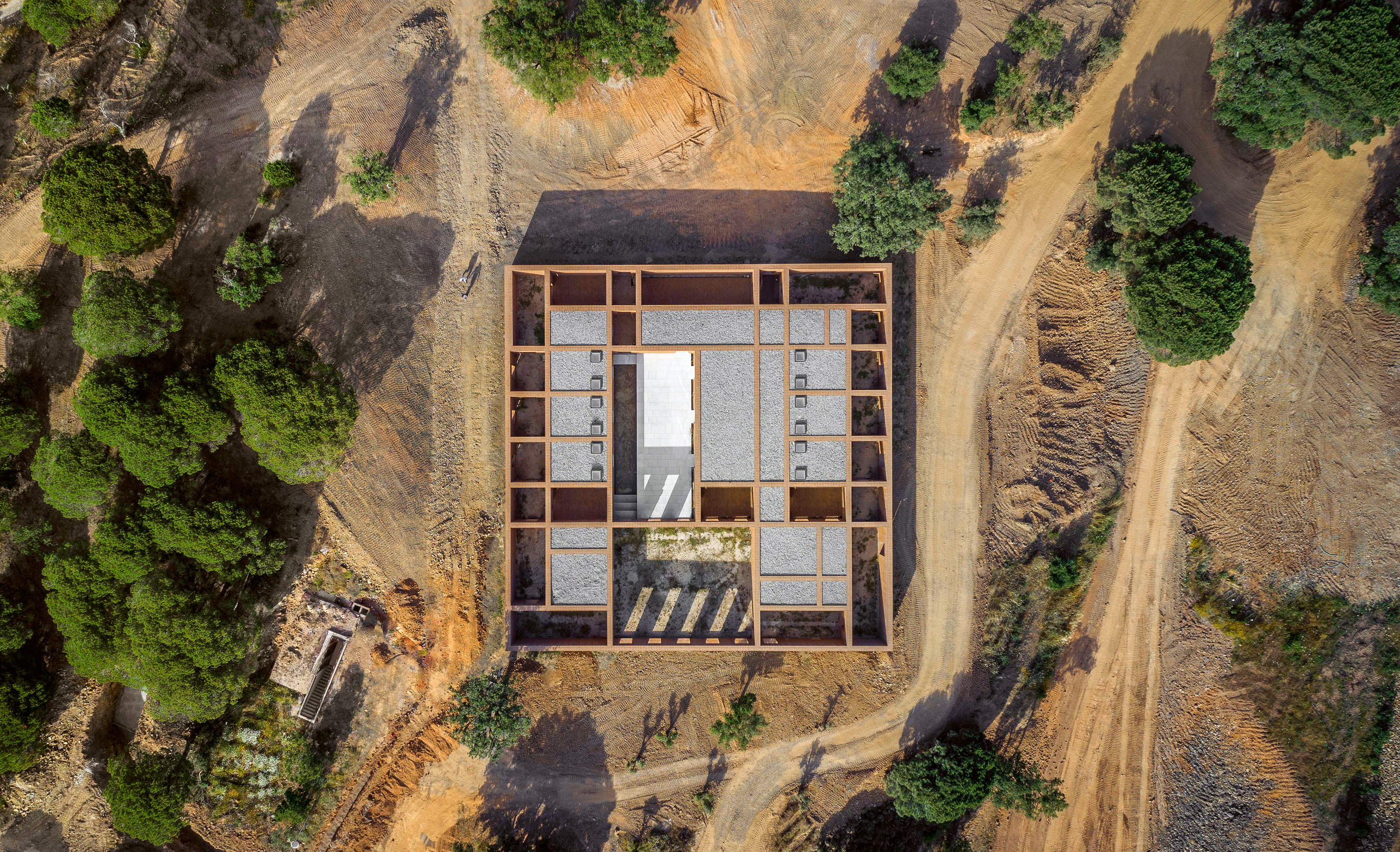 En una plataforma natural de la serranía de Melides, a escasos kilómetros de la costa, se alza esta vivienda de alquiler vacacional construida por encargo de Primosfera: una empresa radicada en Lisboa, que evalúa la construcción de sus propiedades con la misma dedicación y comprensión que la creación de una colección de arte.
