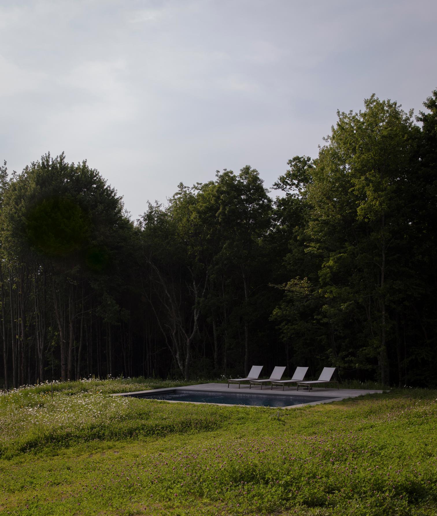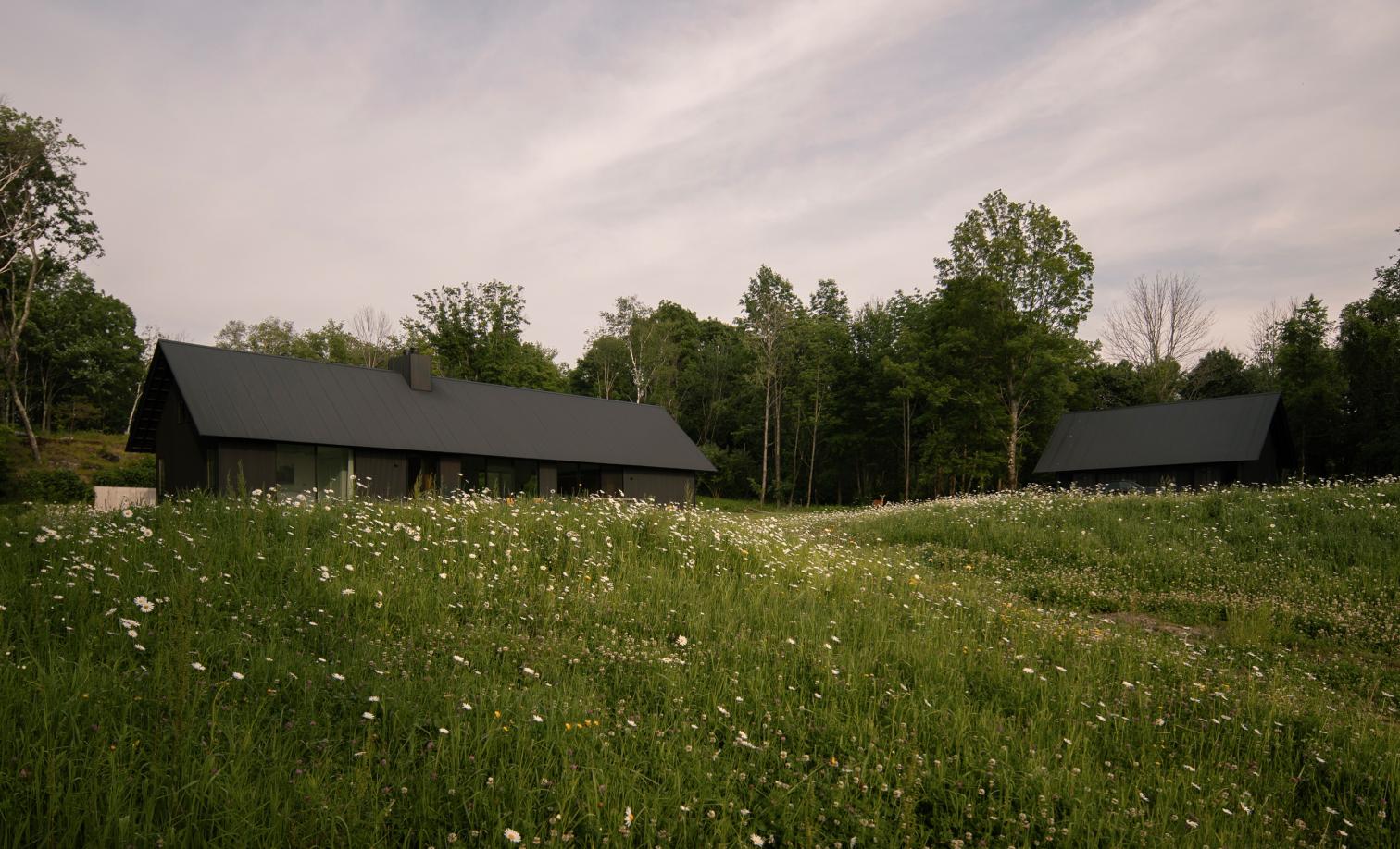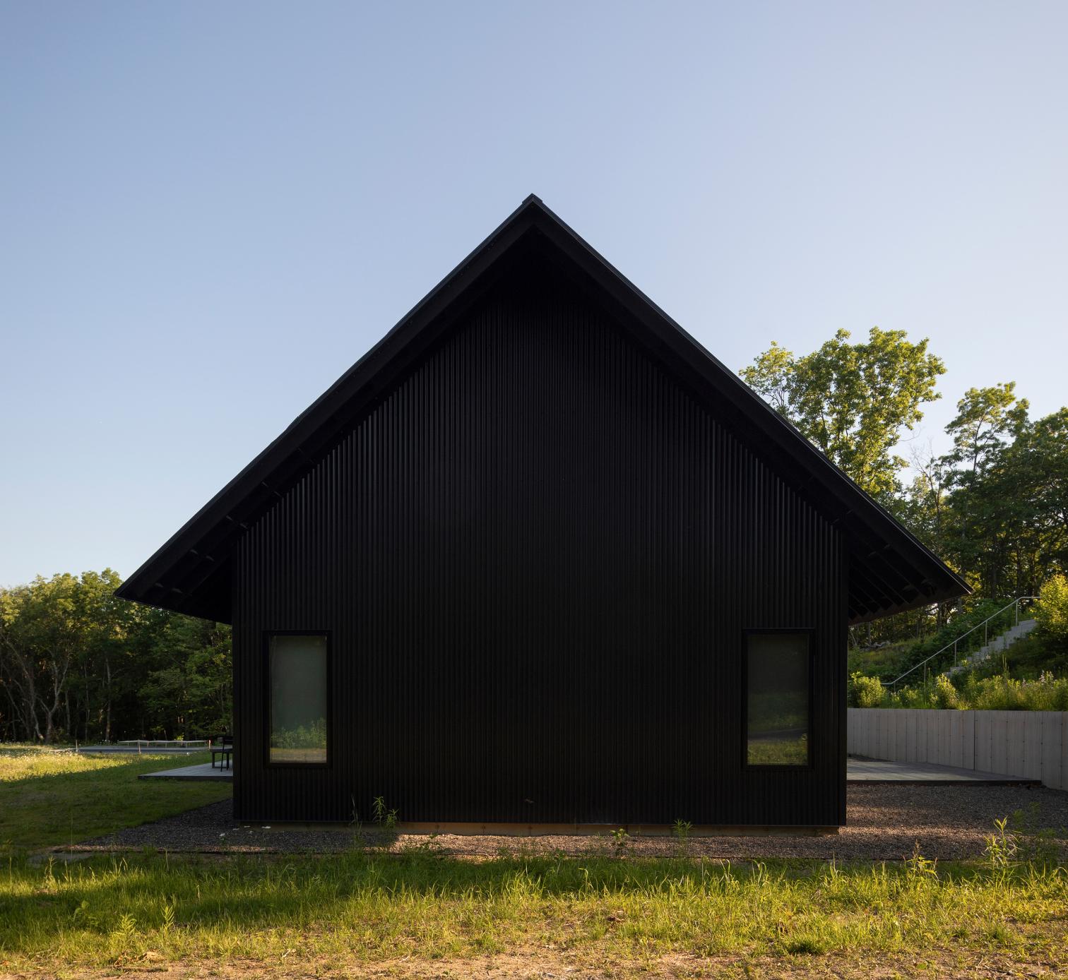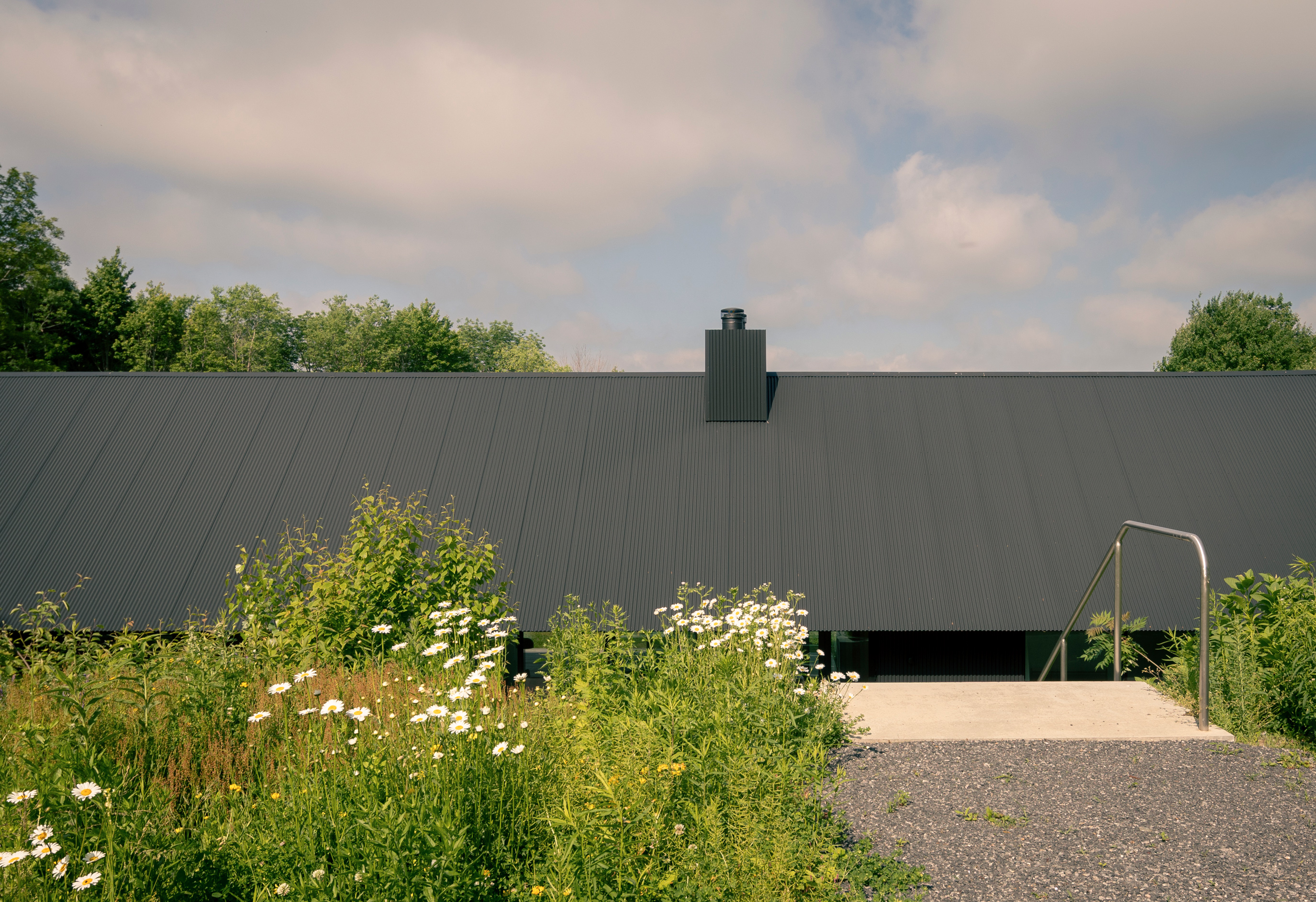 Obra de la firma de Brooklyn Group Projects Architecture, la casa se encuentra en una amplia parcela en Millerton, en el estado de Nueva York, con vistas a las montañas de Catskill. La construcción está situada en el nivel inferior de una pradera, siguiendo la línea de la cresta en la cota más alta de la propiedad, para evitar talar árboles y proteger el edificio de los vientos predominantes. El área plana resultante, retenida por un muro de hormigón, funciona como un íntimo patio delantero al aire libre, que contrasta con la extensión del prado.