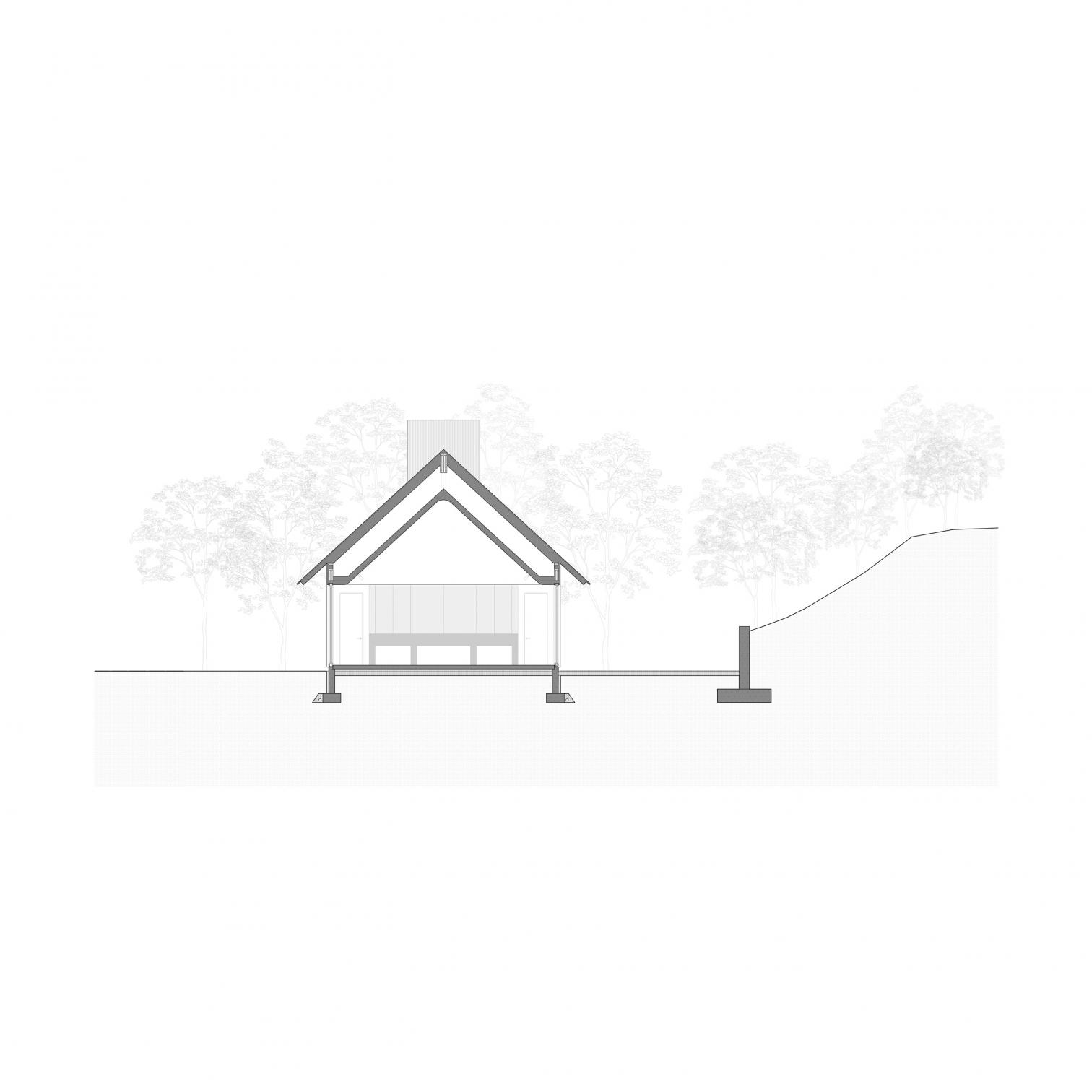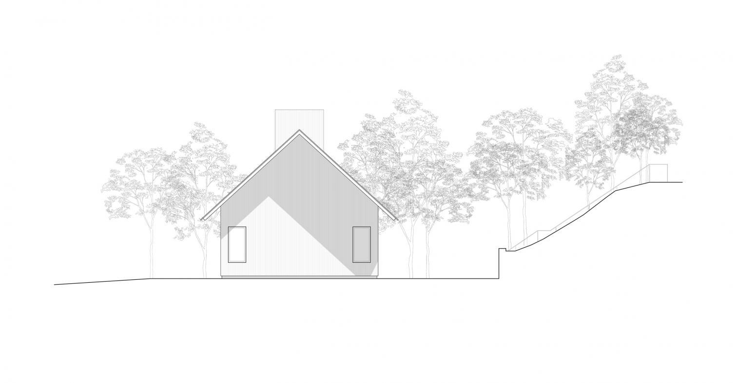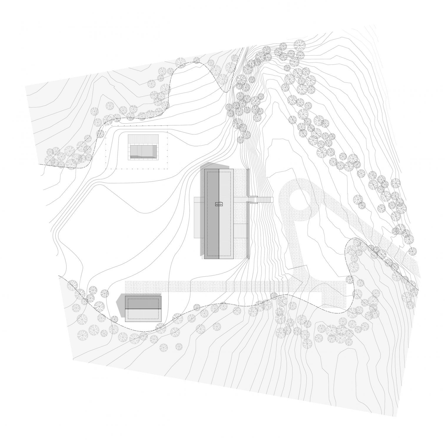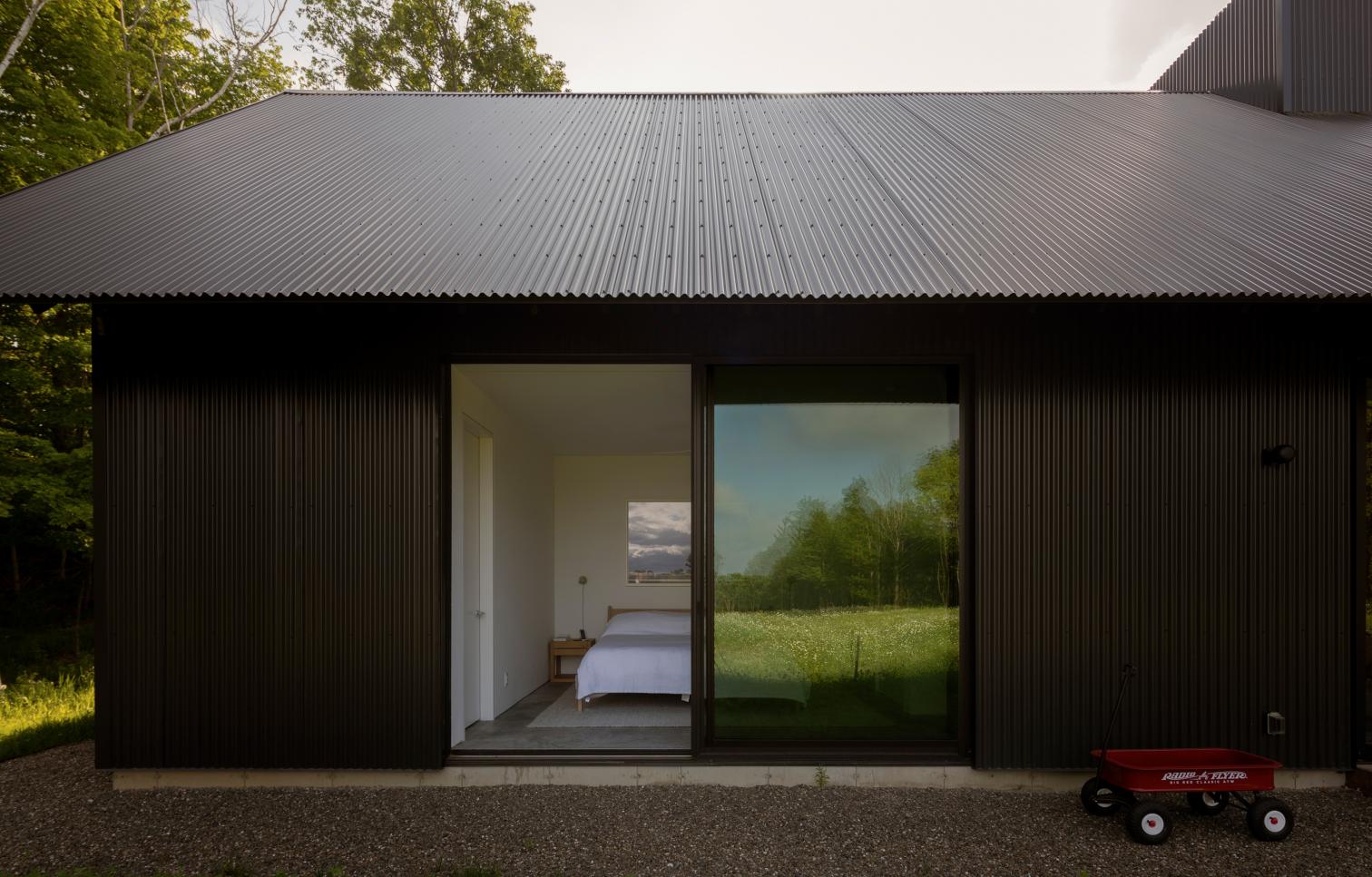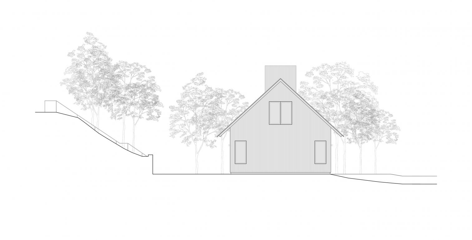 Obra de la firma de Brooklyn Group Projects Architecture, la casa se encuentra en una amplia parcela en Millerton, en el estado de Nueva York, con vistas a las montañas de Catskill. La construcción está situada en el nivel inferior de una pradera, siguiendo la línea de la cresta en la cota más alta de la propiedad, para evitar talar árboles y proteger el edificio de los vientos predominantes. El área plana resultante, retenida por un muro de hormigón, funciona como un íntimo patio delantero al aire libre, que contrasta con la extensión del prado.