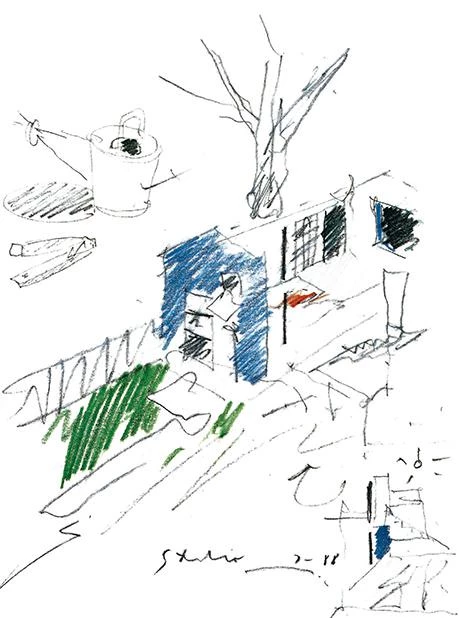 Comenzado en 1983, el estudio profesional del arquitecto es un proyecto en marcha que explora los espacios para la vida y el trabajo, y que ha ido experimentado numerosas variaciones a lo largo del tiempo. Las ampliaciones, las sustracciones y las transformaciones se han producido sobre una serie de pequeños edificios y patios que, gracias a la última de las intervenciones, han podido convertirse, al fin, en un conjunto unificado.