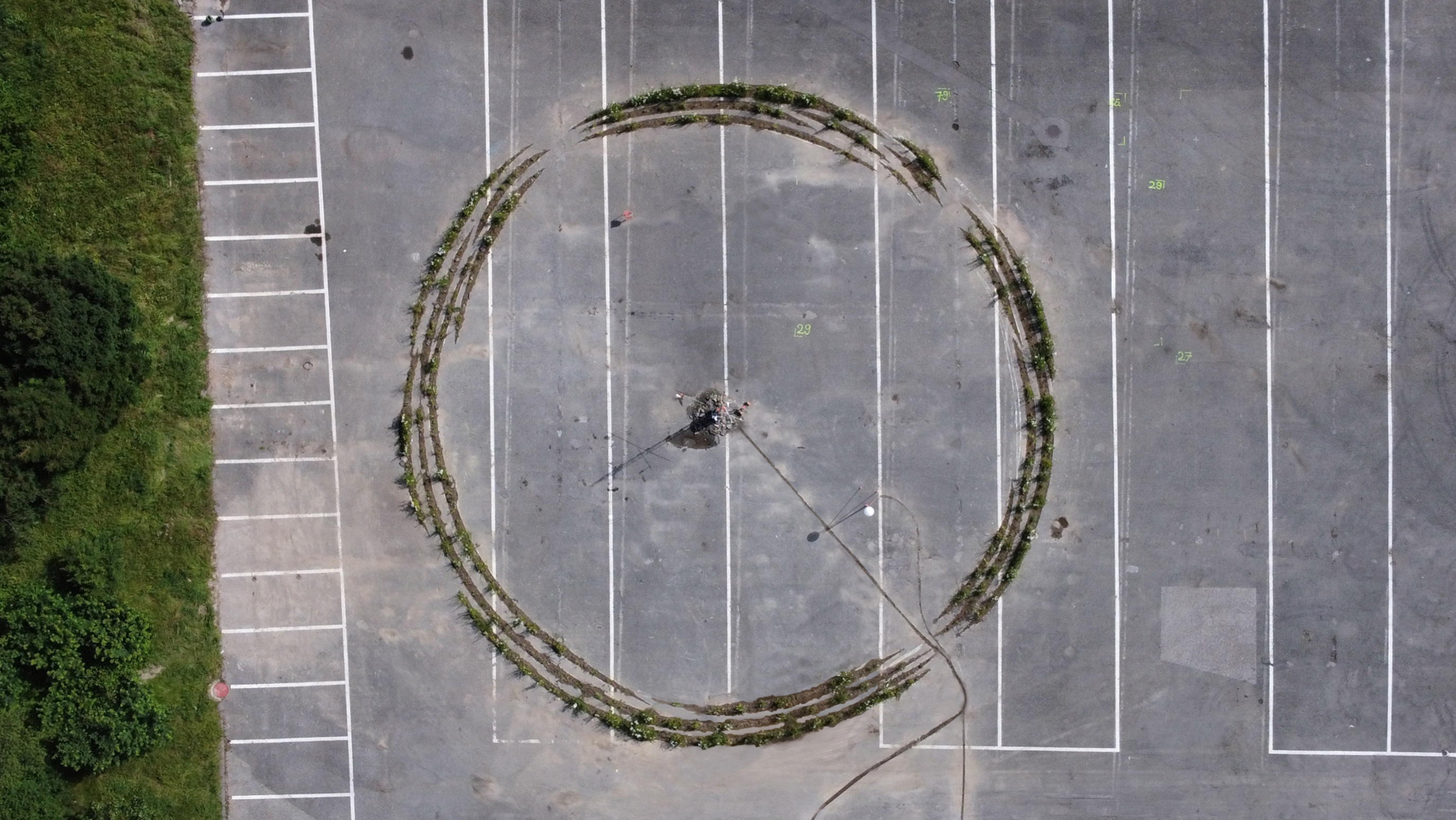 Al final de El sueño de una noche de verano, Puck rompe la cuarta pared para recordar al público que lo que han presenciado no es más que una ficción. La instalación que este año ha ganado el Premio FAD Internacional rompe el suelo de un aparcamiento para hacer ver que el paisaje, a nuestros ojos inmutable, no es más que una construcción que evoluciona con el tiempo. Lo que hoy es asfalto fue un terreno de labranza, antes incluso el lecho de un lago, y a esta realidad latente buscan llegar unos surcos circulares que aran la dura superficie y dejan que la flora crezca a su través, en parte gracias a la estructura que se yergue en el centro: un híbrido de regadera, farola y reclamo para pájaros que da soporte a un nuevo ecosistema y reconecta la vida urbana con un medio que dista mucho de ser una ilusión.