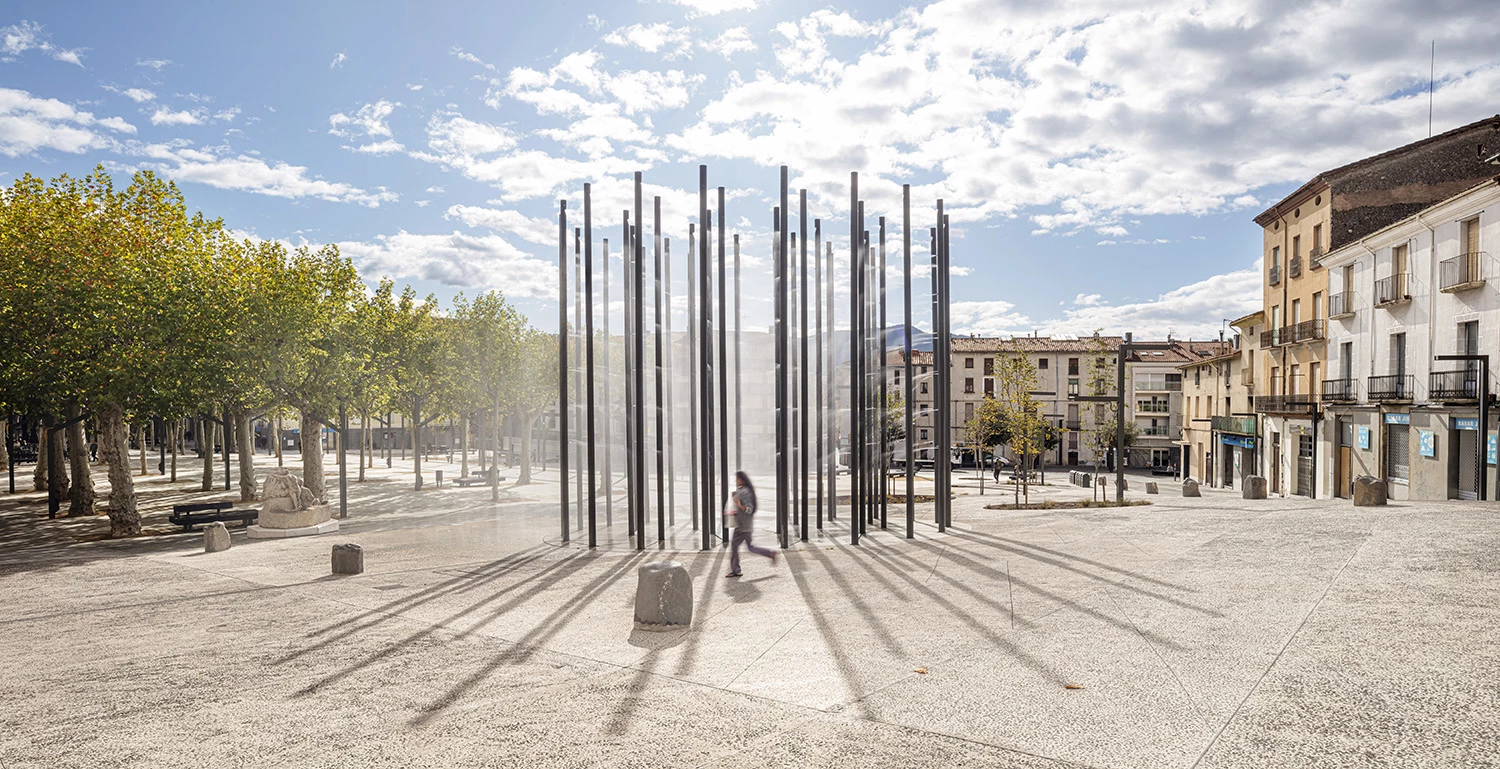 Fruto de la colaboración entre los arquitectos Jaume Bach, Anna Bach, Eugeni Bach, Xevi Bayona y Alba Colomer, junto al ingeniero de caminos Lluís Pauné, esta intervención urbanística remarca la geometría de los límites entre el conocido como ‘El Firal’, el paseo del escultor Miquel Blay en Olot, y ‘El Firalet’, el paseo del obispo Guillamet, ambos espacios representativos de la ciudad gerundense.