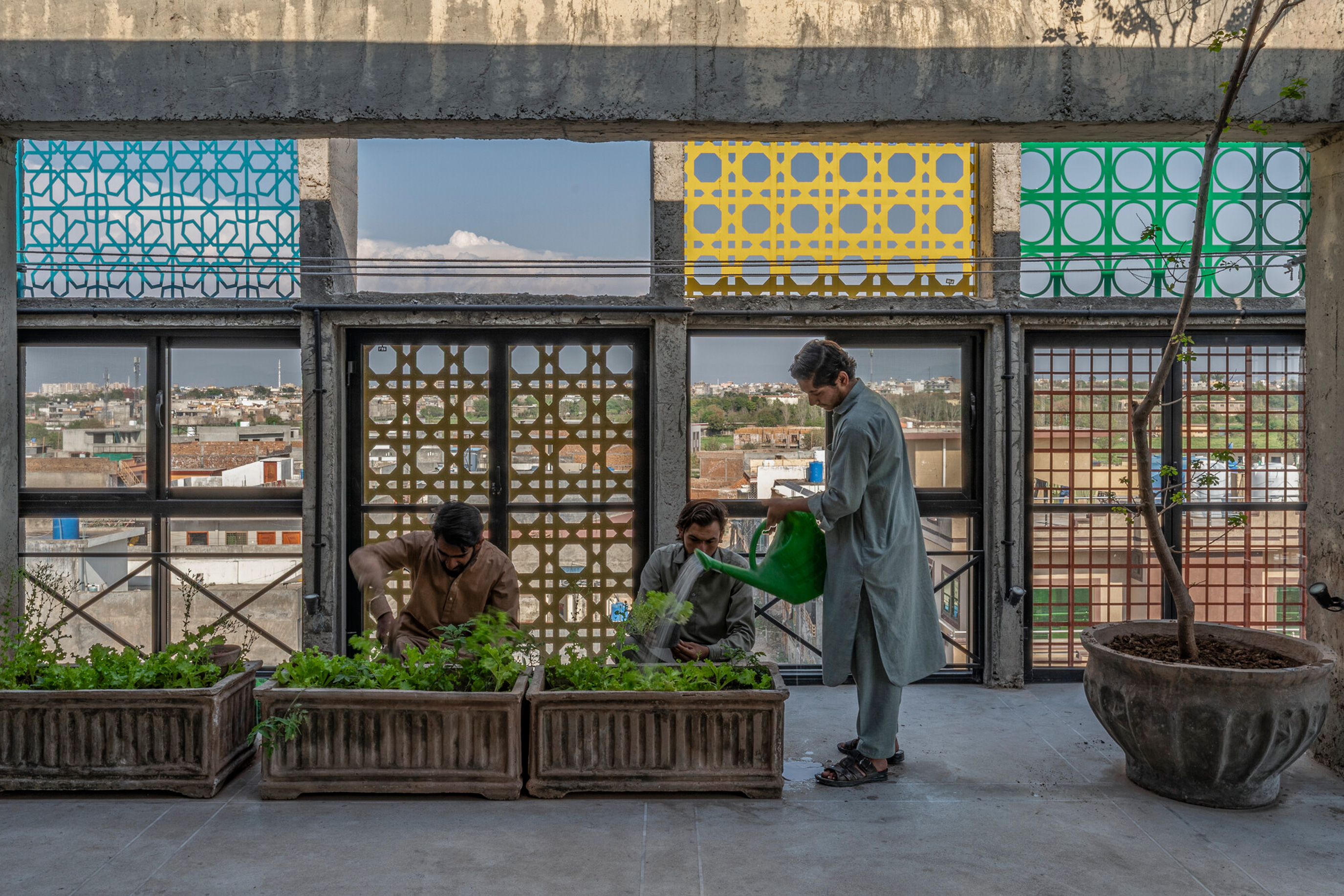 El edificio Vision Pakistan, proyectado por DB Studios / Mohammad Saifullah Siddiqui, alberga un centro de formación profesional para jóvenes en situación de vulnerabilidad en Islamabad. Cada año, entre cuarenta y cincuenta participantes reciben capacitación en sastrería, alfabetización y otras habilidades clave, con el objetivo de fomentar su integración social.