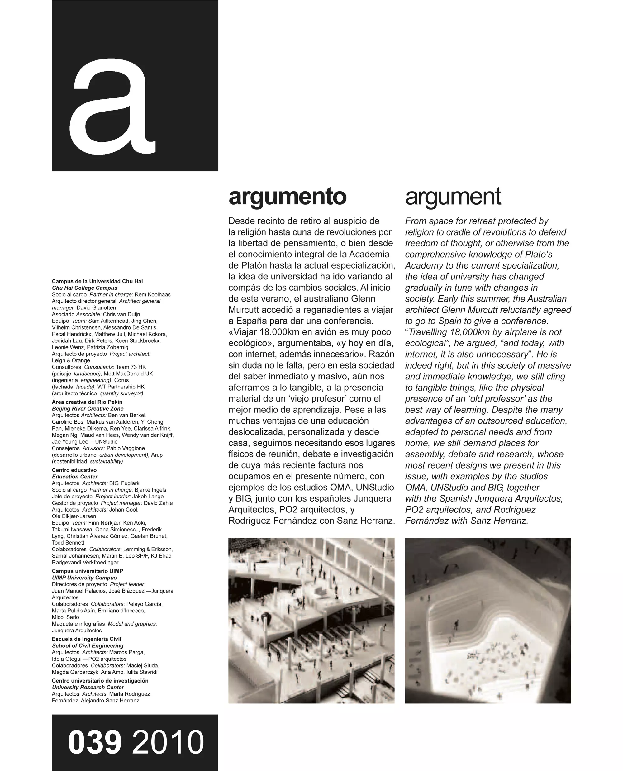 Proyecto: Campus de la Universidad Chu Hai, Hong Kong / Beijing River Creative Zone, Beijing / Centro educativo, Faroe Islands / Campus Universitario UIMP / Escuela de Ingeniería Civil, Lugo / Centro universitario de investigación, Valladolid