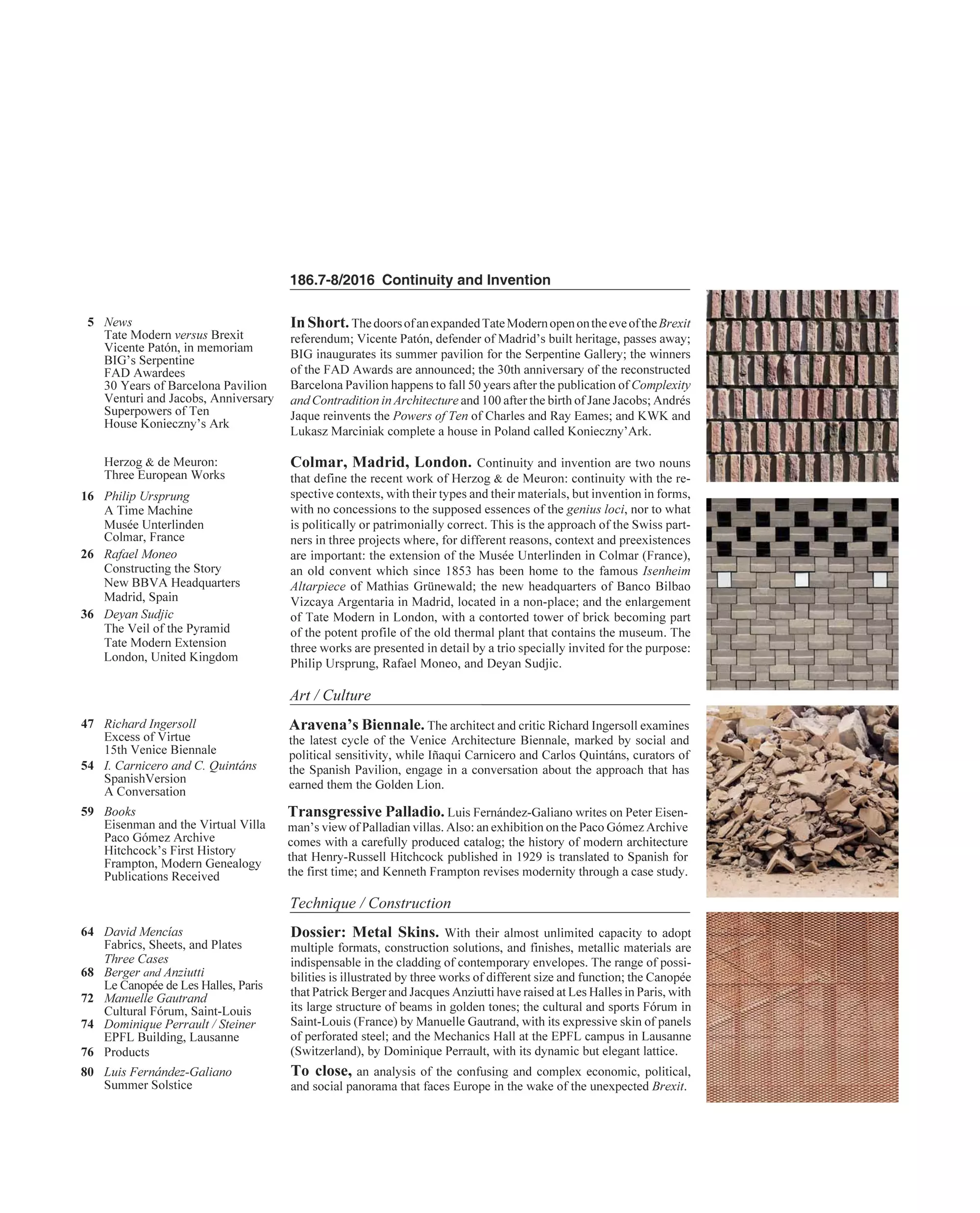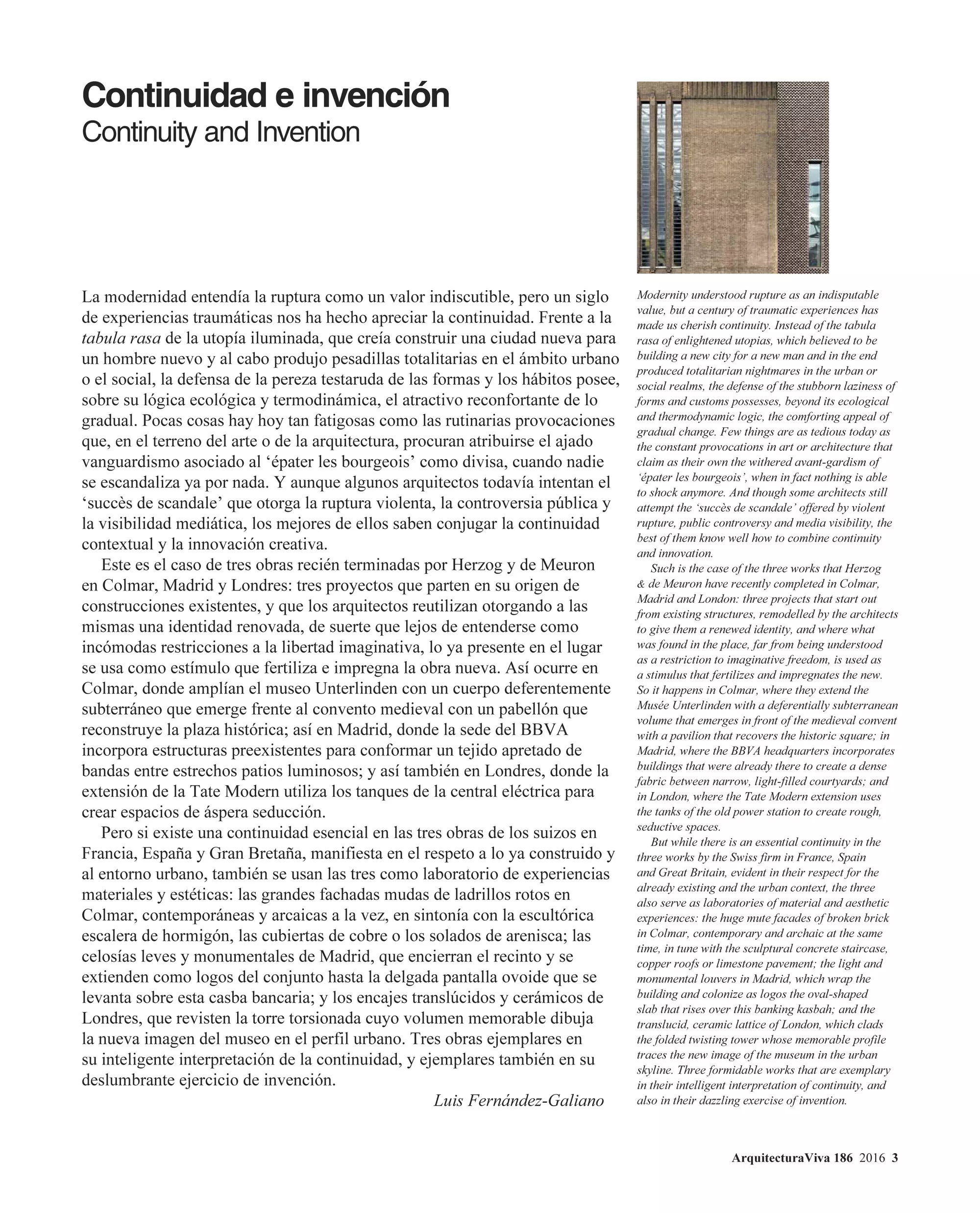 La modernidad entendía la ruptura como un valor indiscutible, pero un siglo de experiencias traumáticas nos ha hecho apreciar la continuidad. Frente a la tabula rasa de la utopía iluminada, que creía construir una ciudad nueva para un hombre nuevo y