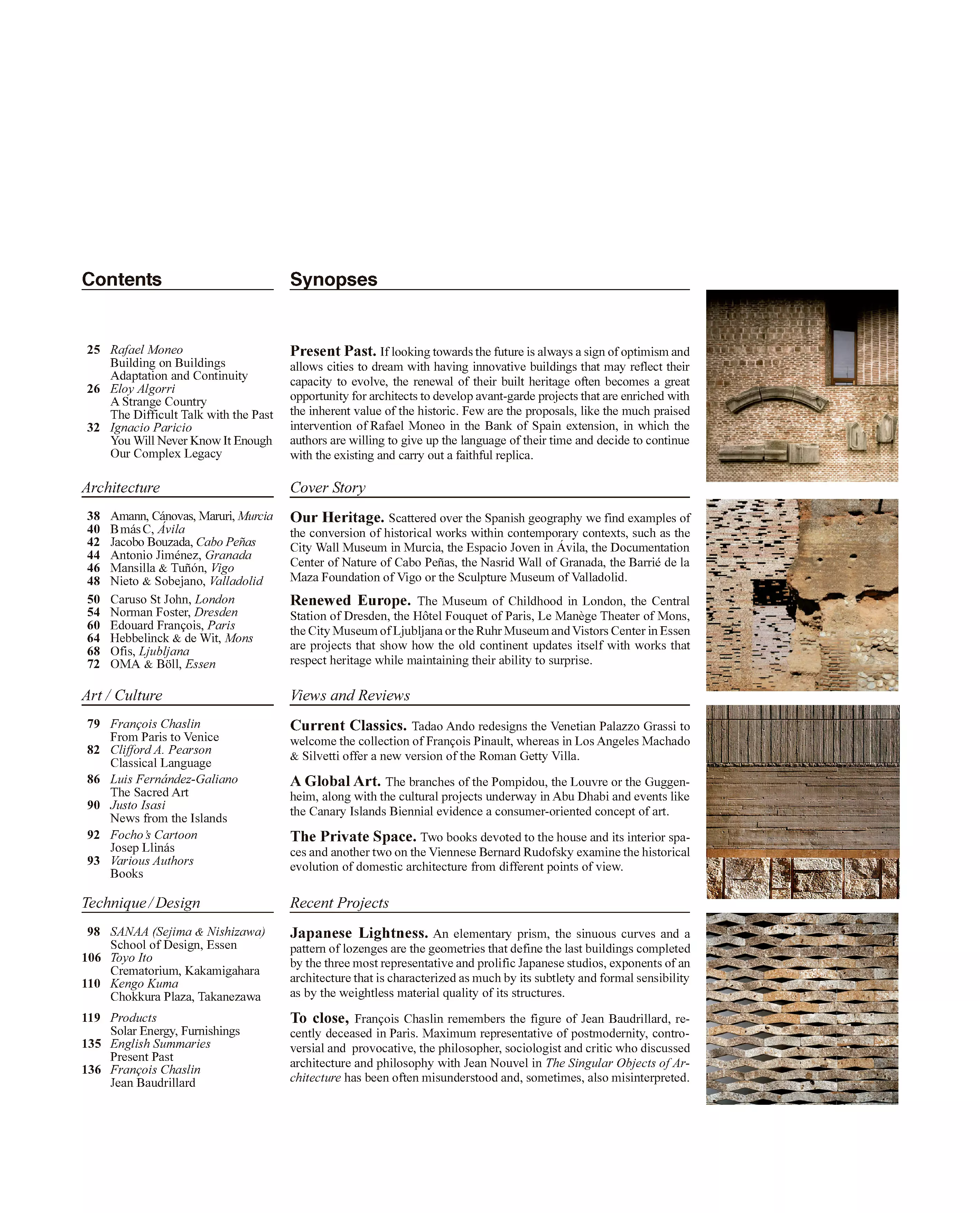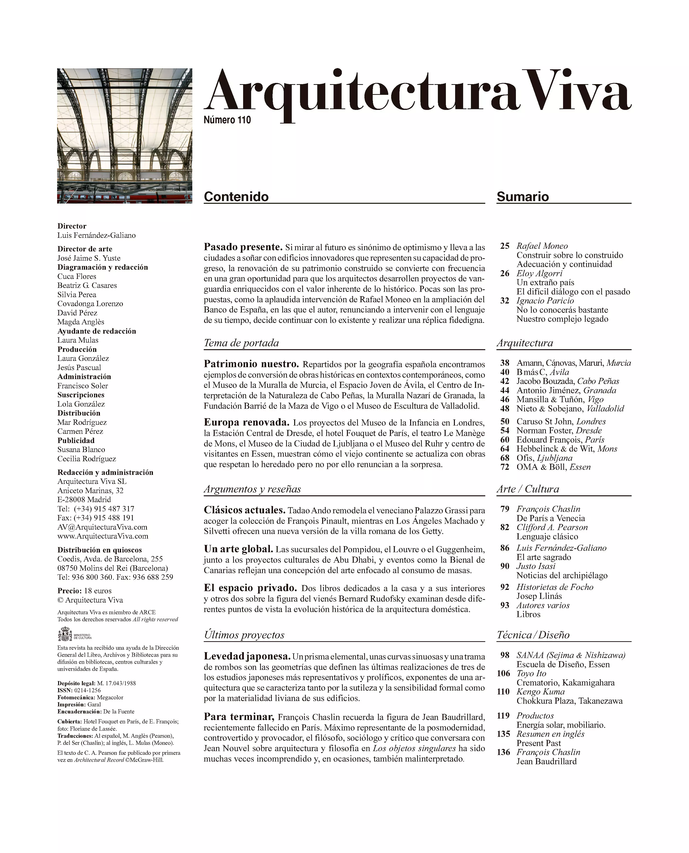Para terminar, François Chaslin recuerda la figura de Jean Baudrillard, recientemente fallecido en París. Máximo representante de la posmodernidad, controvertido y provocador, el filósofo, sociólogo y crítico que conversara con Jean Nouvel sobre arquitectura y filosofía en Los objetos singulares ha sido muchas veces incomprendido y, en ocasiones, también malinterpretado.Productos