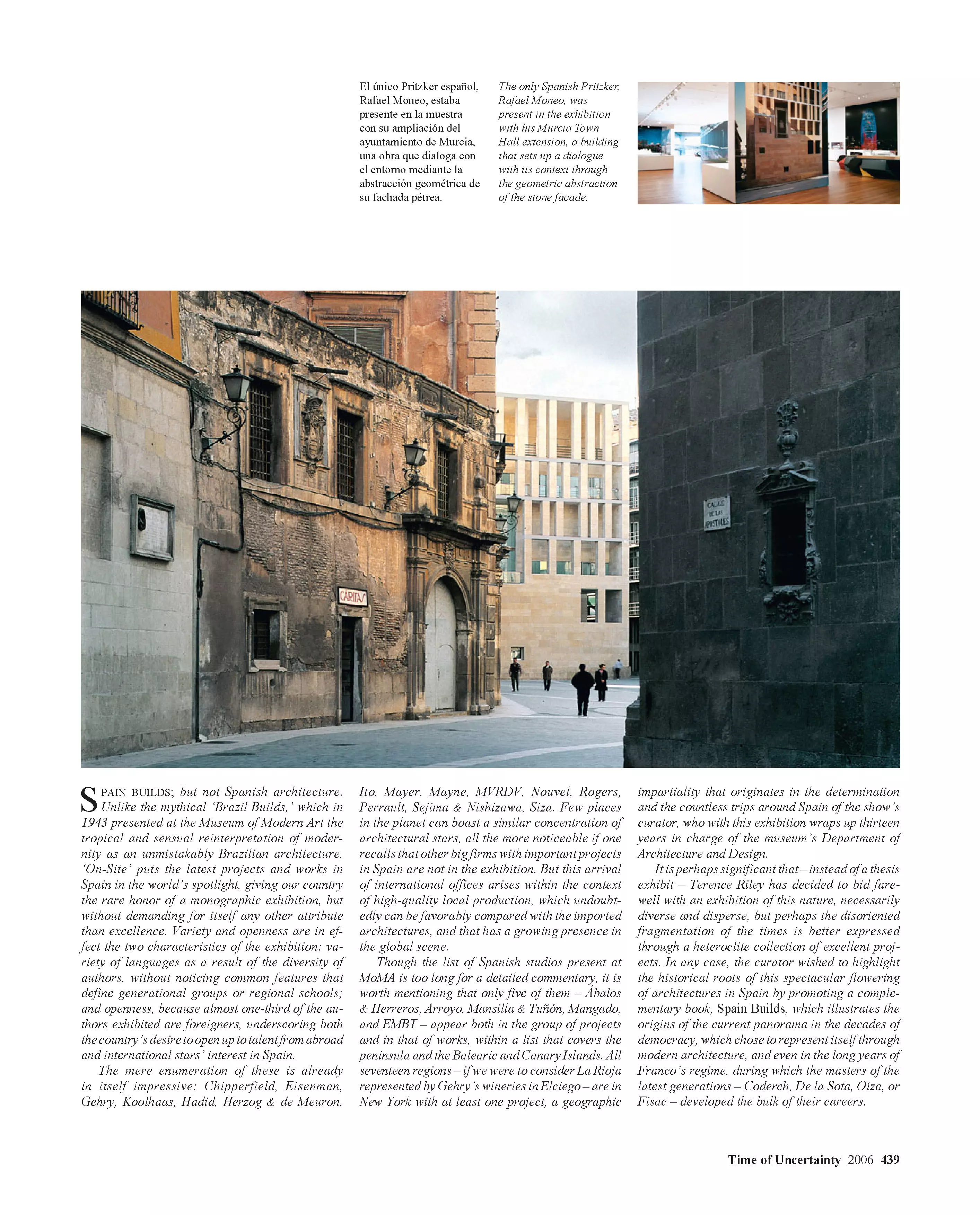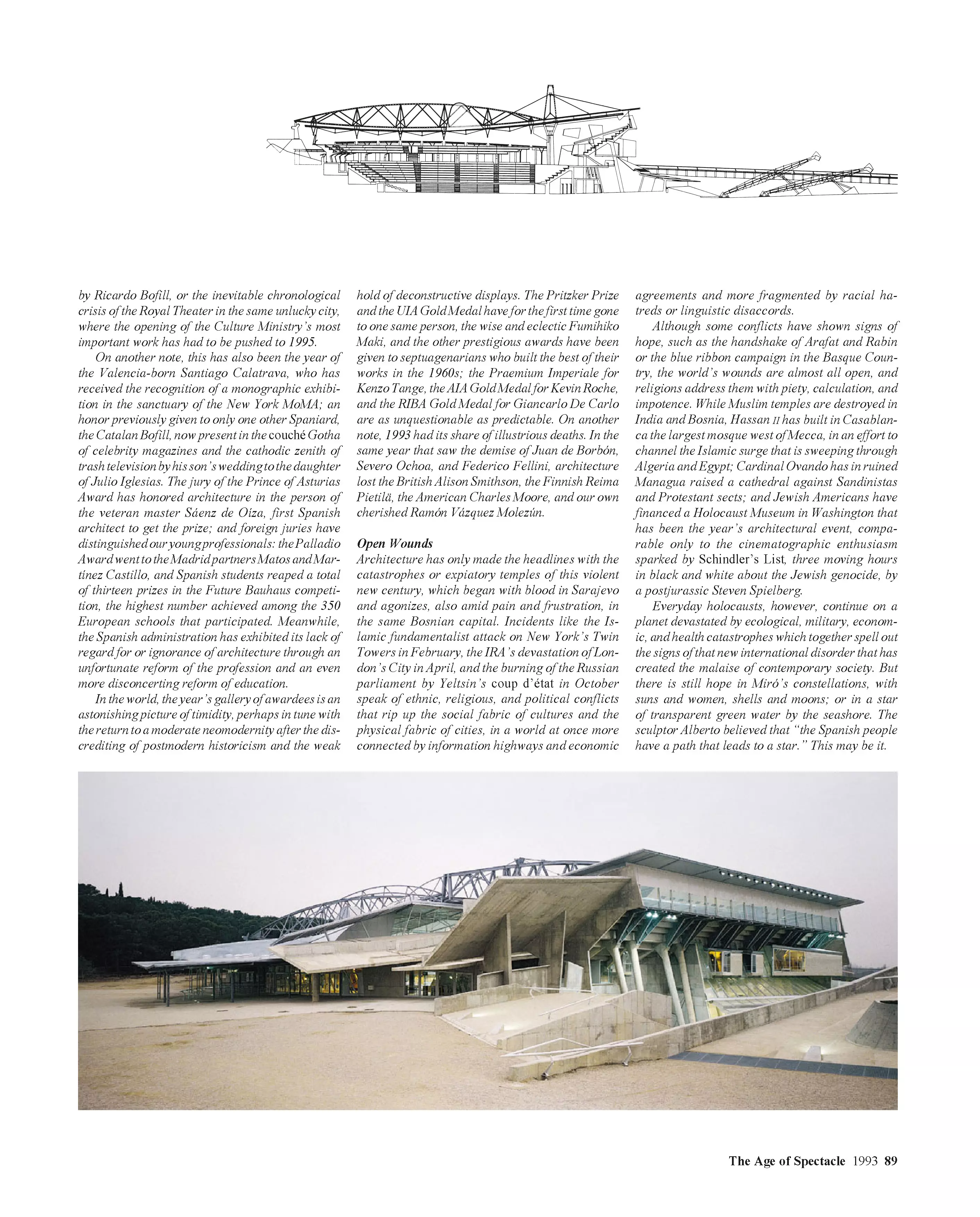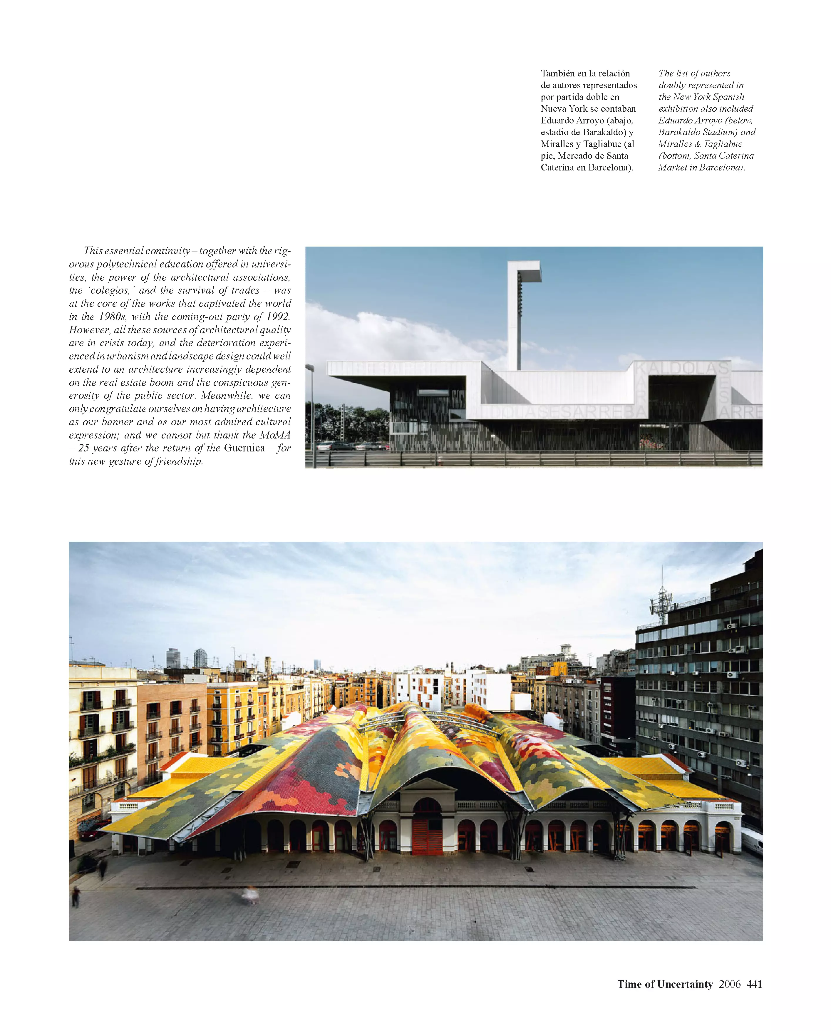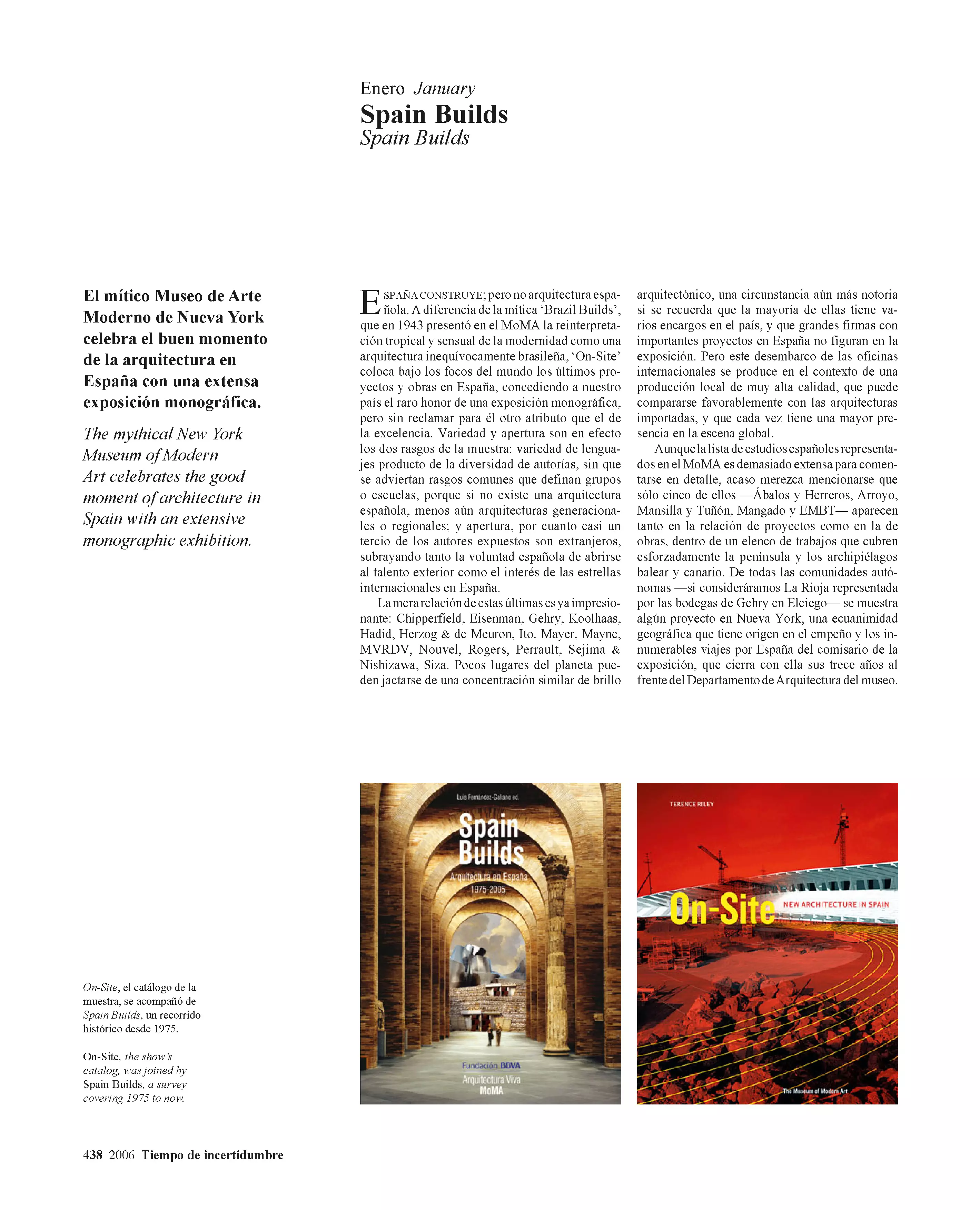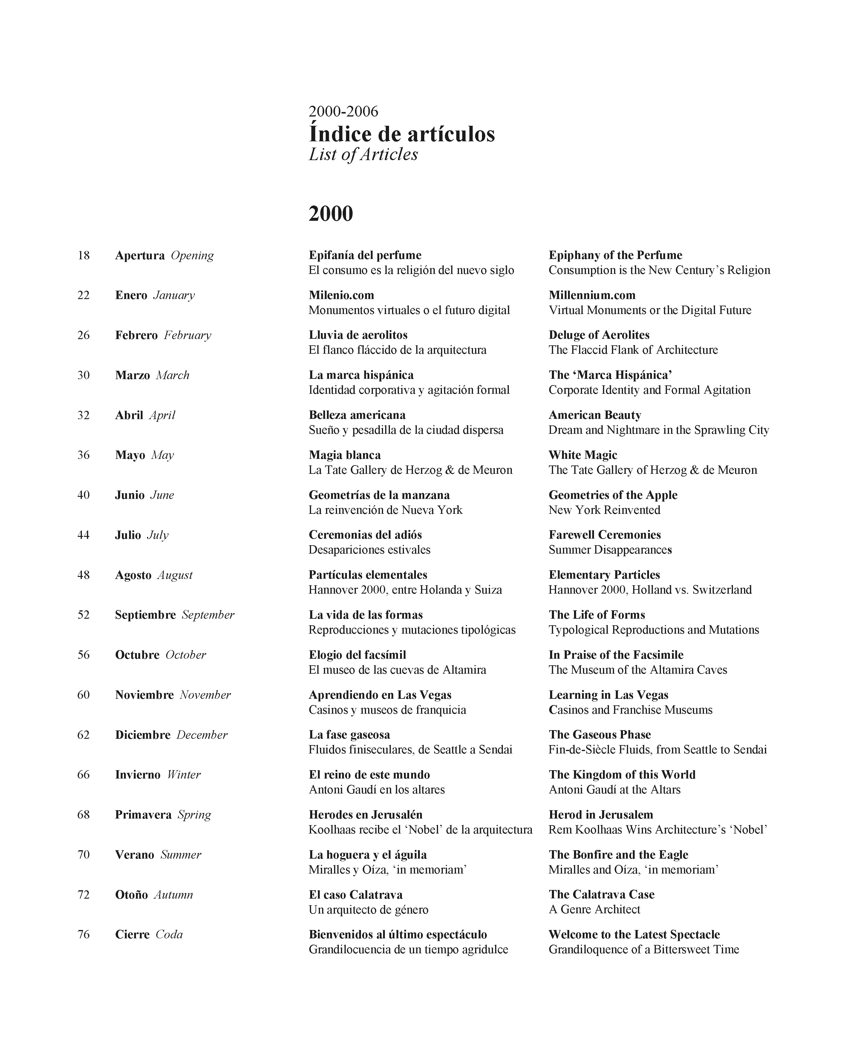 Luis Fernández-Galiano presenta una selección de los artículos escritos entre 1993 y 2006 para El País, diario donde se ocupó durante esos años de la página semanal de arquitectura. Agrupados con el nombre común Años alejandrinos, que evoca a la vez su extensión cronológica y su carácter de crónica, los dos volúmenes de 512 páginas cada uno retratan las vicisitudes de la arquitectura en el tránsito entre los siglos XX y XXI. Titulado La edad del espectáculo, el primero de ellos cubre los últimos años del siglo pasado, un periodo de prosperidad optimista cuya mejor expresión fue el mediático Museo Guggenheim de Bilbao. Los primeros años de nuestro siglo se incluyen en el segundo volumen, Tiempo de incertidumbre, que refleja la inquietud posterior al 11 de septiembre, así como la sensación de fragilidad producida por los conflictos bélicos y el cambio climático. Los textos, que entrelazan la arquitectura con el arte, el pensamiento, la economía o la política, están ilustrados con más de 2.500 imágenes, y por ellos desfilan casi 2.000 protagonistas de las realizaciones y los debates de ese tiempo. Los artículos fueron calificados por Rafael Moneo de «pequeñas obras maestras», describiéndolos como «bien construidos, brillantes en la elección de las metáforas, informados, sutiles…», y asegurando que «quienquiera que estudie en el futuro lo que ha sido la historia de la arquitectura en estos años deberá acudir a esta rica cantera de escritos».