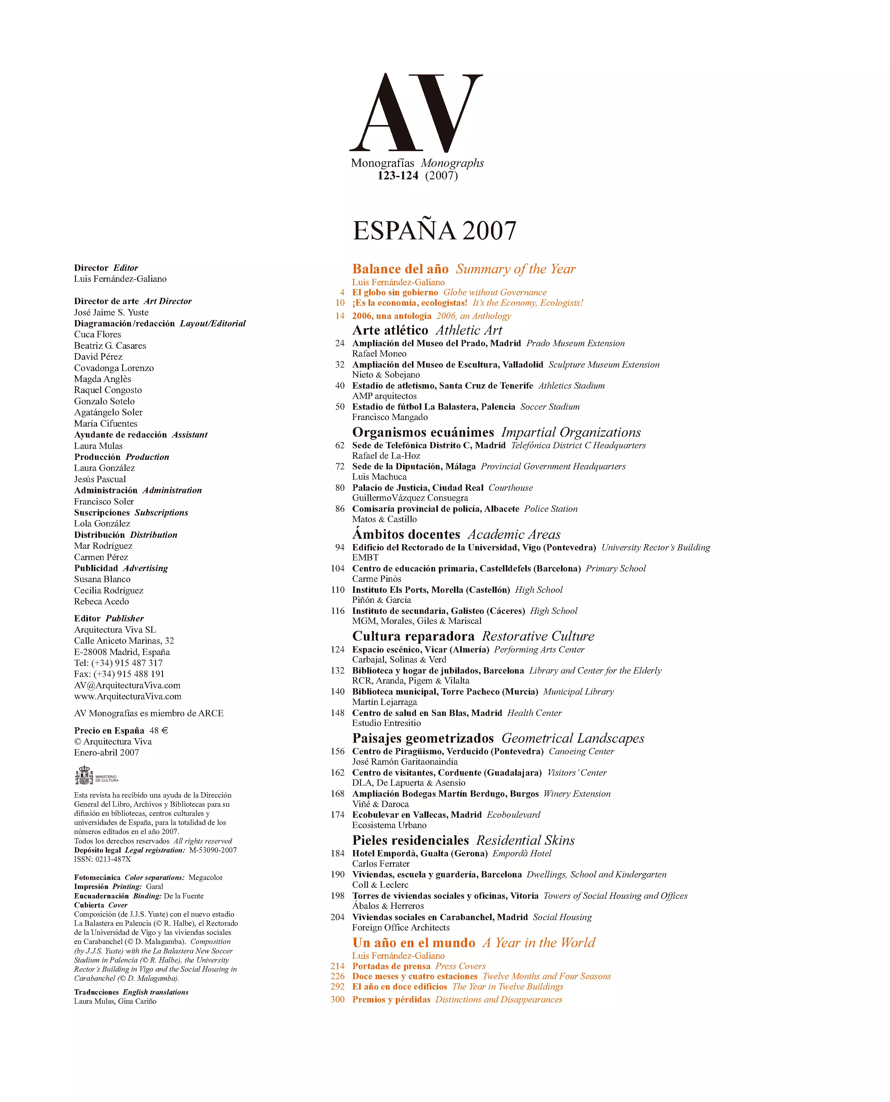 Fueled by a real-estate boom that started to show signs of cooling, the Spanish economy grew above the European average, experiencing a surge that benefited building companies, which made colossal acquisitions in the energy and services sectors, and boosted urban development both in Madrid – involved in public works of the scale of the M-30 ringroad or the Castellana skyscrapers – and in the remaining cities, and of course in those that prepare important events, be it Valencia – where David Chipperfield and b720 completed the main building of the marina for the America’s Cup of 2007 – or Zaragoza, which shall add to the projects already under way for the Expo 2008 a new museum in the heart of the city, designed by Herzog & de Meuron.
