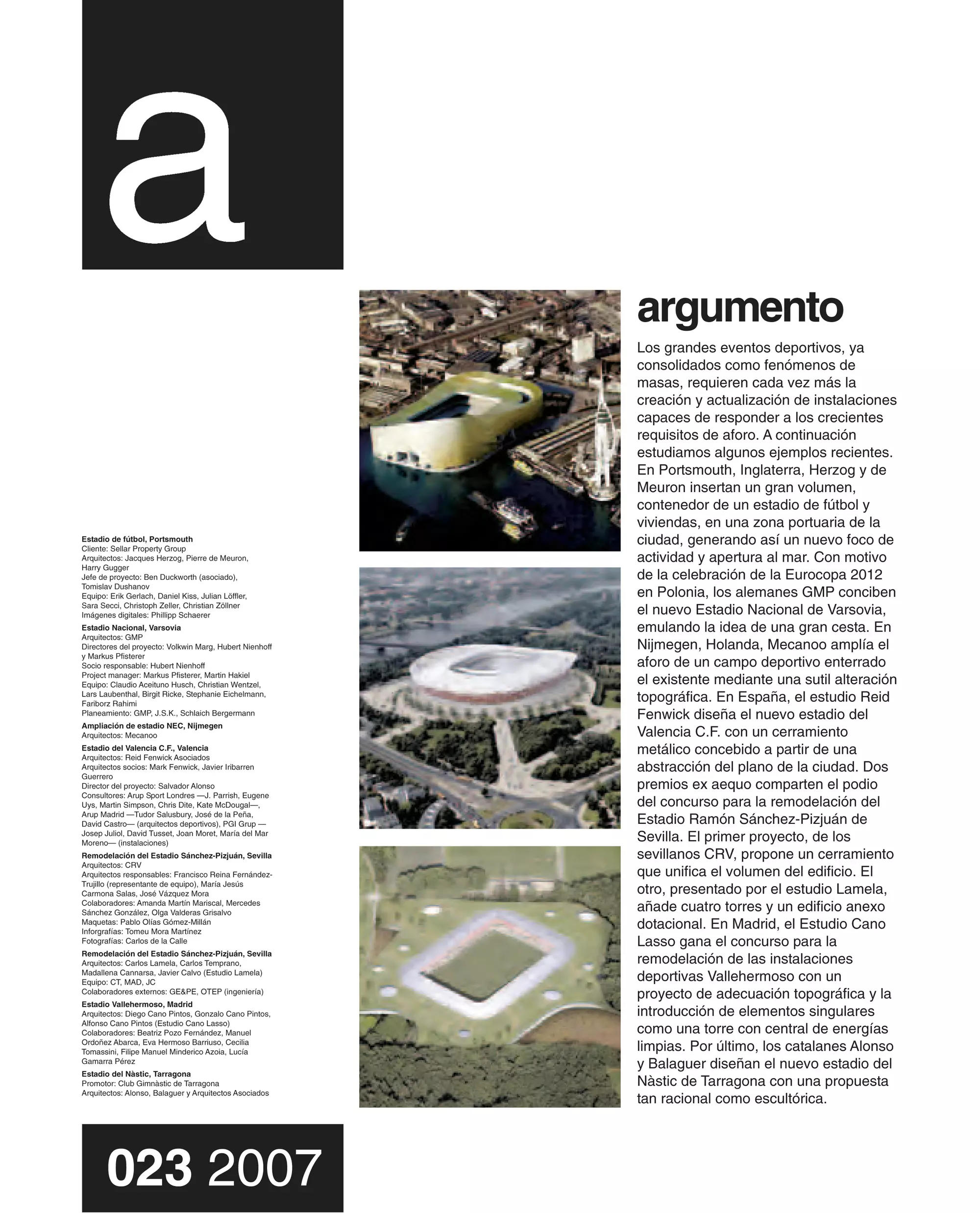 Proyecto: Estadio de fútbol / Estadio Nacional / Ampliación del estadio NEC / Estadio del Valencia C.F. / Ampliación del Sánchez-Pizjuán / Ampliación del Sánchez-Pizjuán / Polideportivo Vallehermoso / Estadio del Nástic
