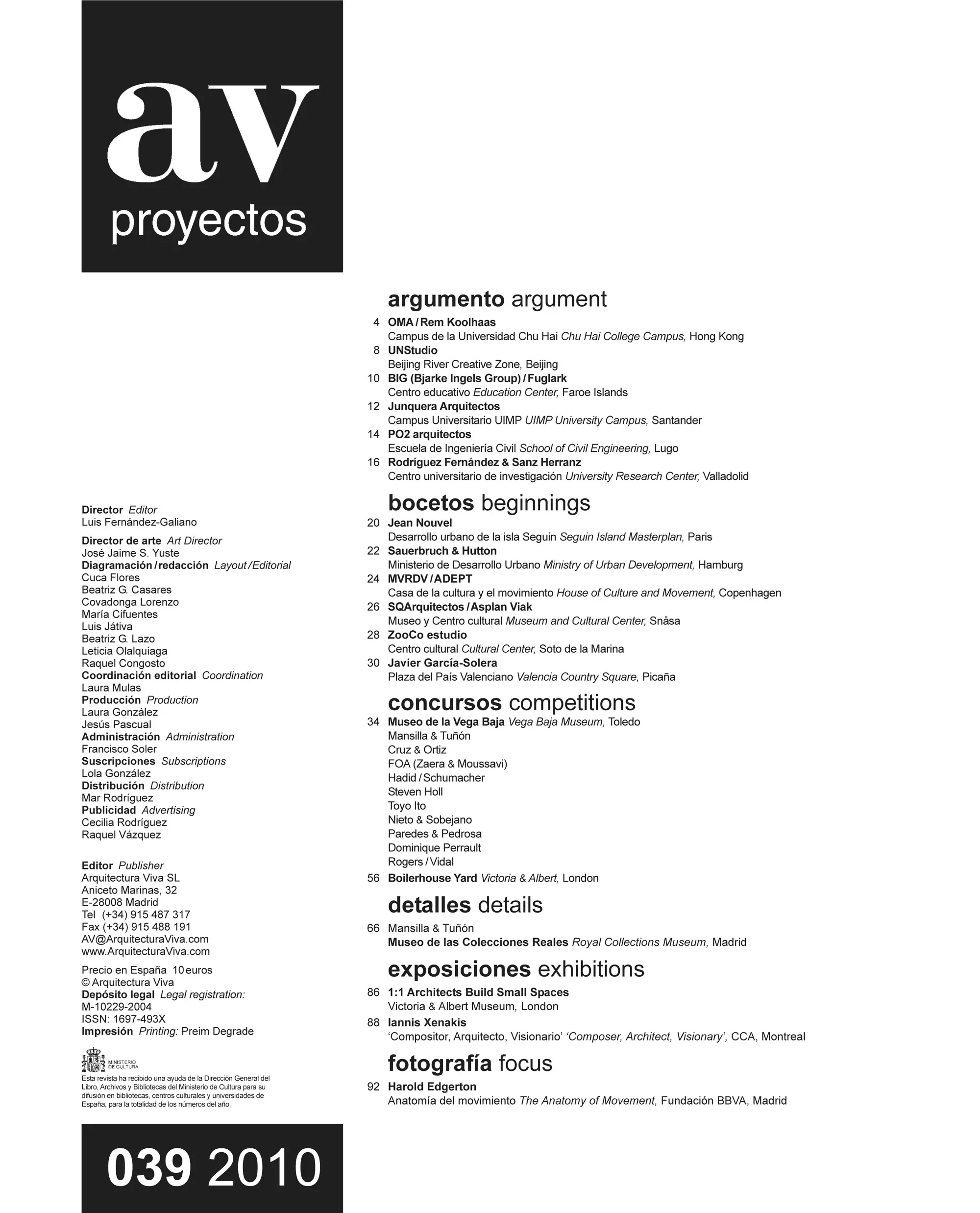 Arquitecto: (Museo) /Moreno Mansilla, Luis; Tuñón, Emilio (primer premio) / Cruz, Antonio; Ortiz, Antonio /Zaera, Alejandro; Moussavi, Farshid - FOA (Foreign Office Architects) / Hadid, Zaha; Schumacher, Patrik / Holl, Steven / Ito, Toyo / Nieto, Fuensanta; Sobejano, Enrique / García de Paredes, Ángela; García Pedrosa, Ignacio / Perrault, Dominique / Rogers, Richard; Vidal, Luis (Victoria & Albert) Fobert, Jamie / Fretton, Tony / Heneghan Peng / Levete, Amanda / Mangado, Francisco / Koolhaas, Rem - OMA / Snøhetta / Sutherland Hussey