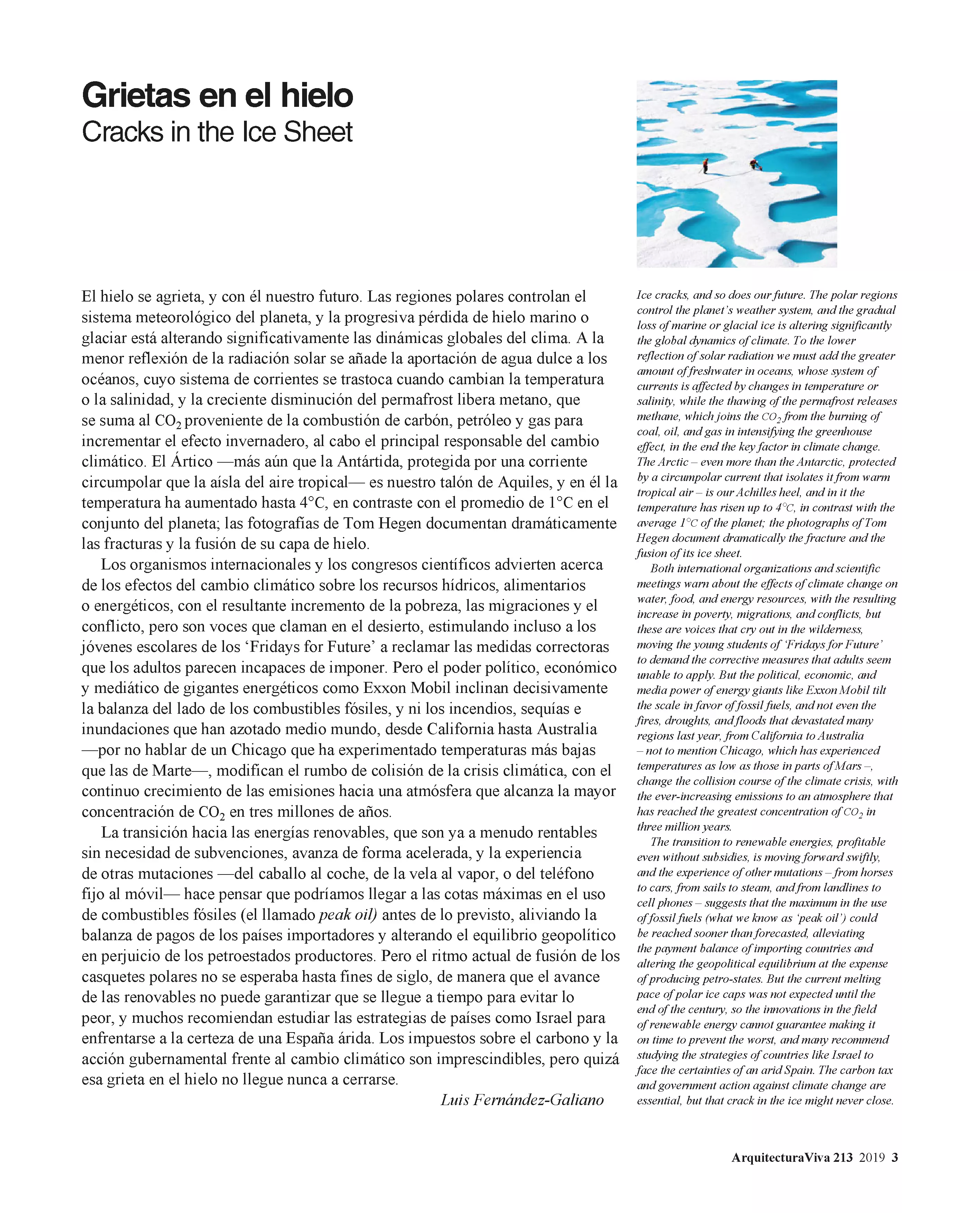 Ice cracks, and so does our future. The polar regions control the planet’s weather system, and the gradual loss of marine or glacial ice is altering significantly the global dynamics of climate. To the lower reflection of solar radiation we must add