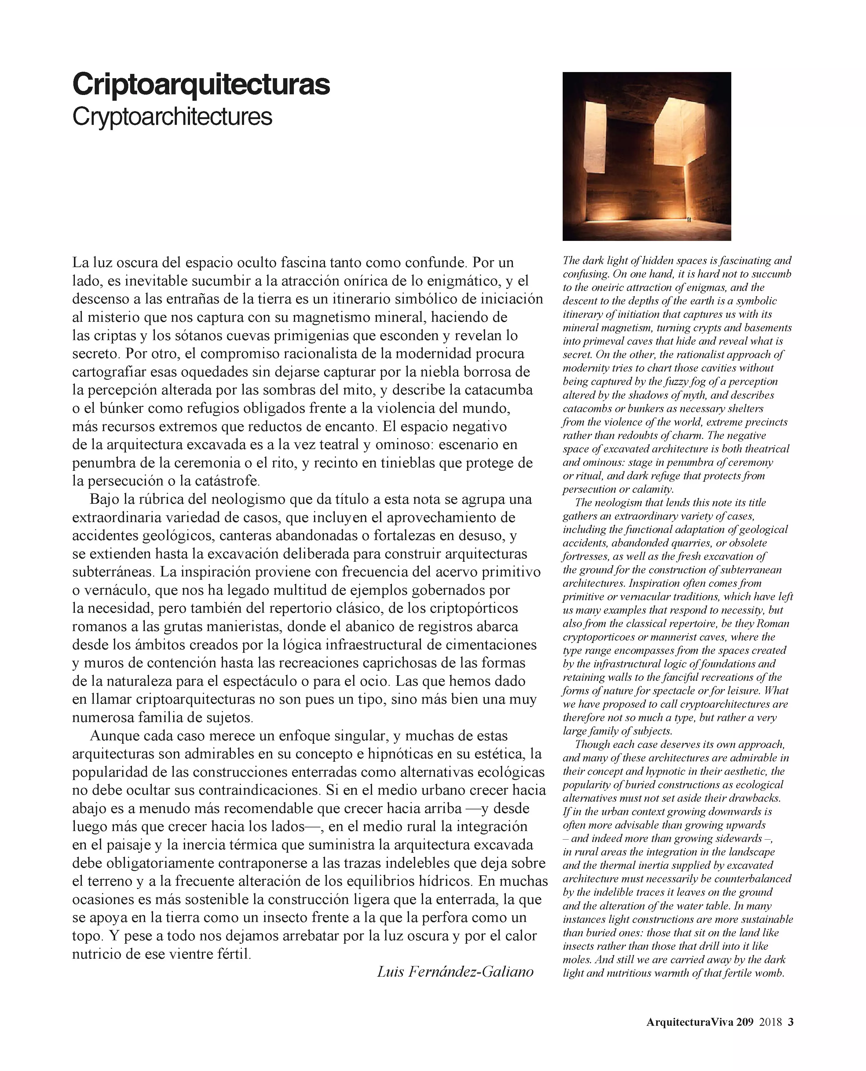 The dark light of hidden spaces is fascinating and confusing. On one hand, it is hard not to succumb to the oneiric attraction of enigmas, and the descent to the depths of the earth is a symbolic itinerary of initiation that captures us with its mine