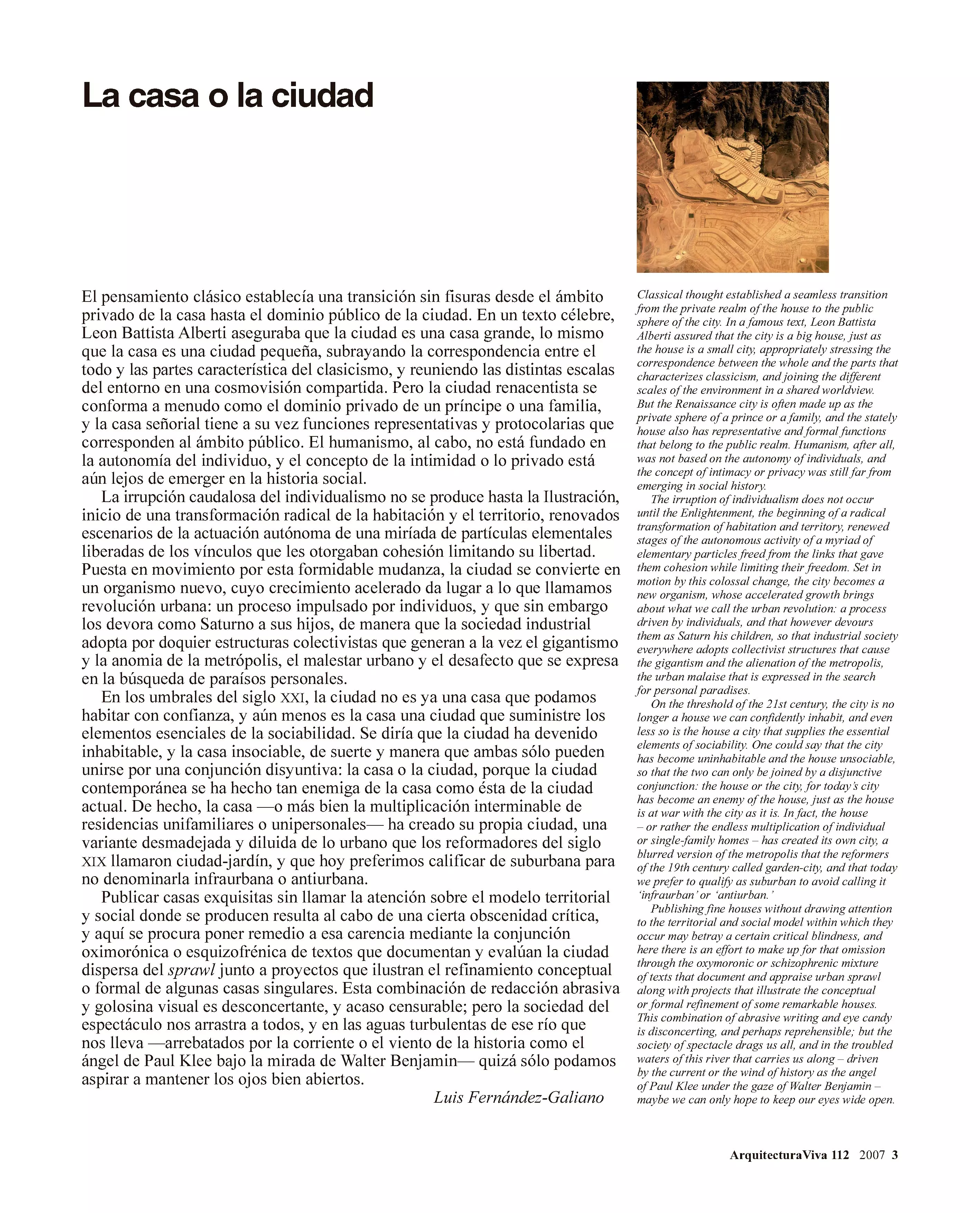 Classical thought established a seamless transition from the private realm of the house to the public sphere of the city. In a famous text, Leon Battista Alberti assured that the city is a big house, just as the house is a small city, appropriately s