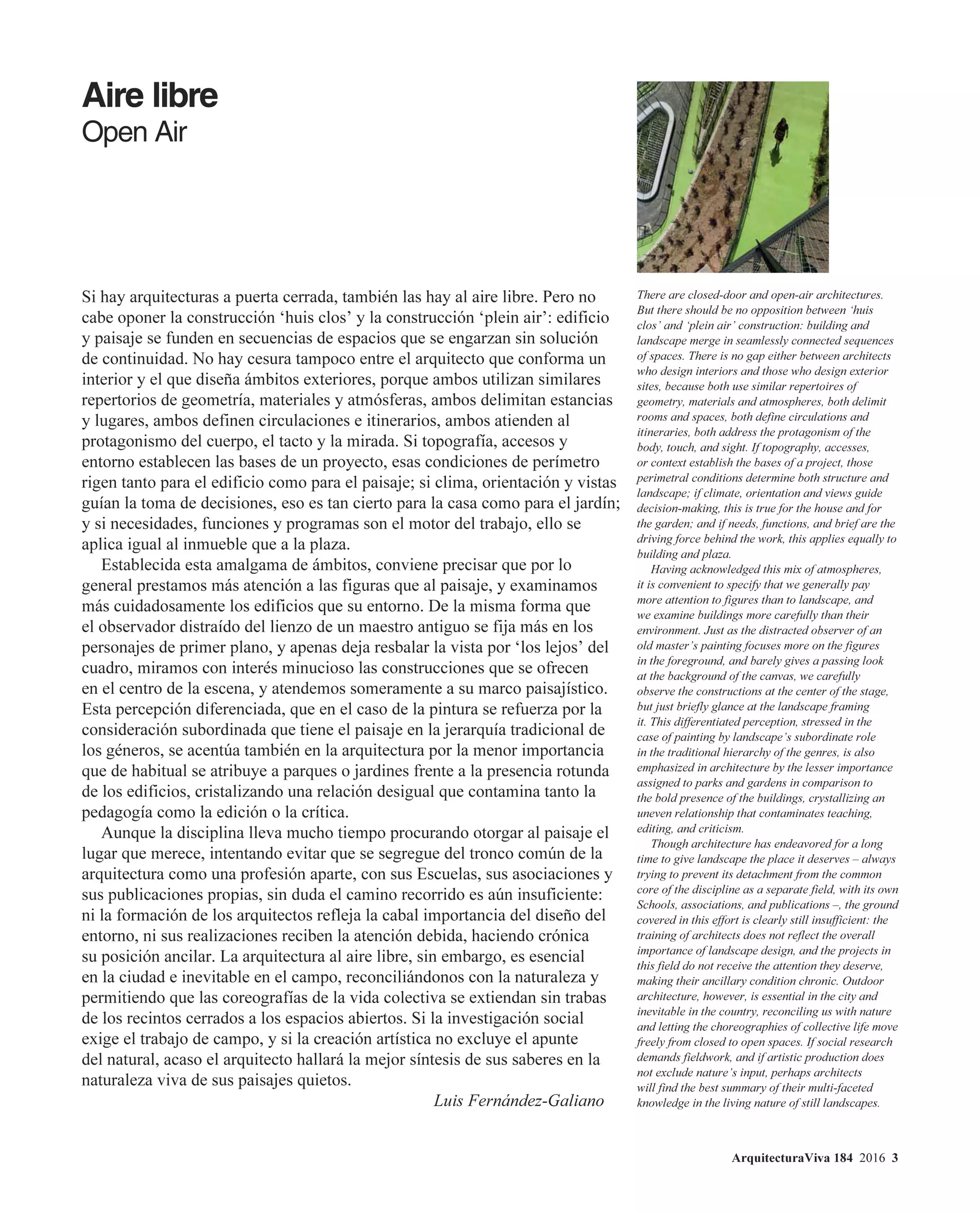 There are closed-door and open-air architectures. But there should be no opposition between ‘huis clos’ and ‘plein air’ construction: building and landscape merge in seamlessly connected sequences of spaces. There is no gap either between architects