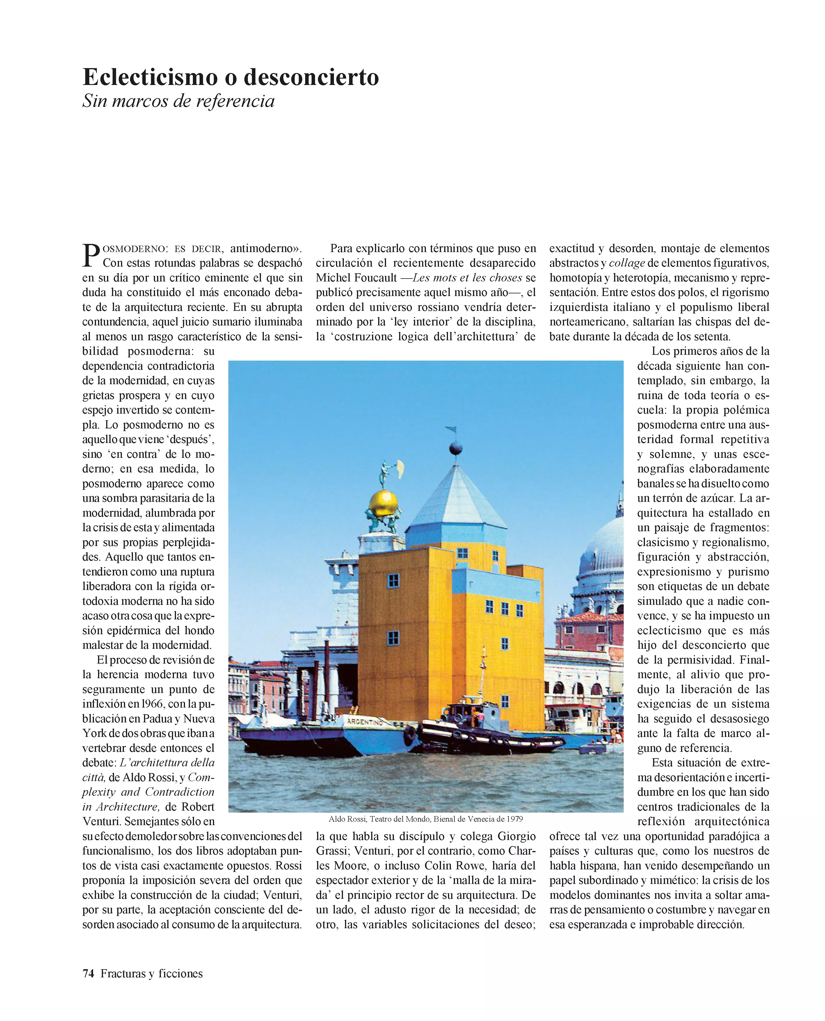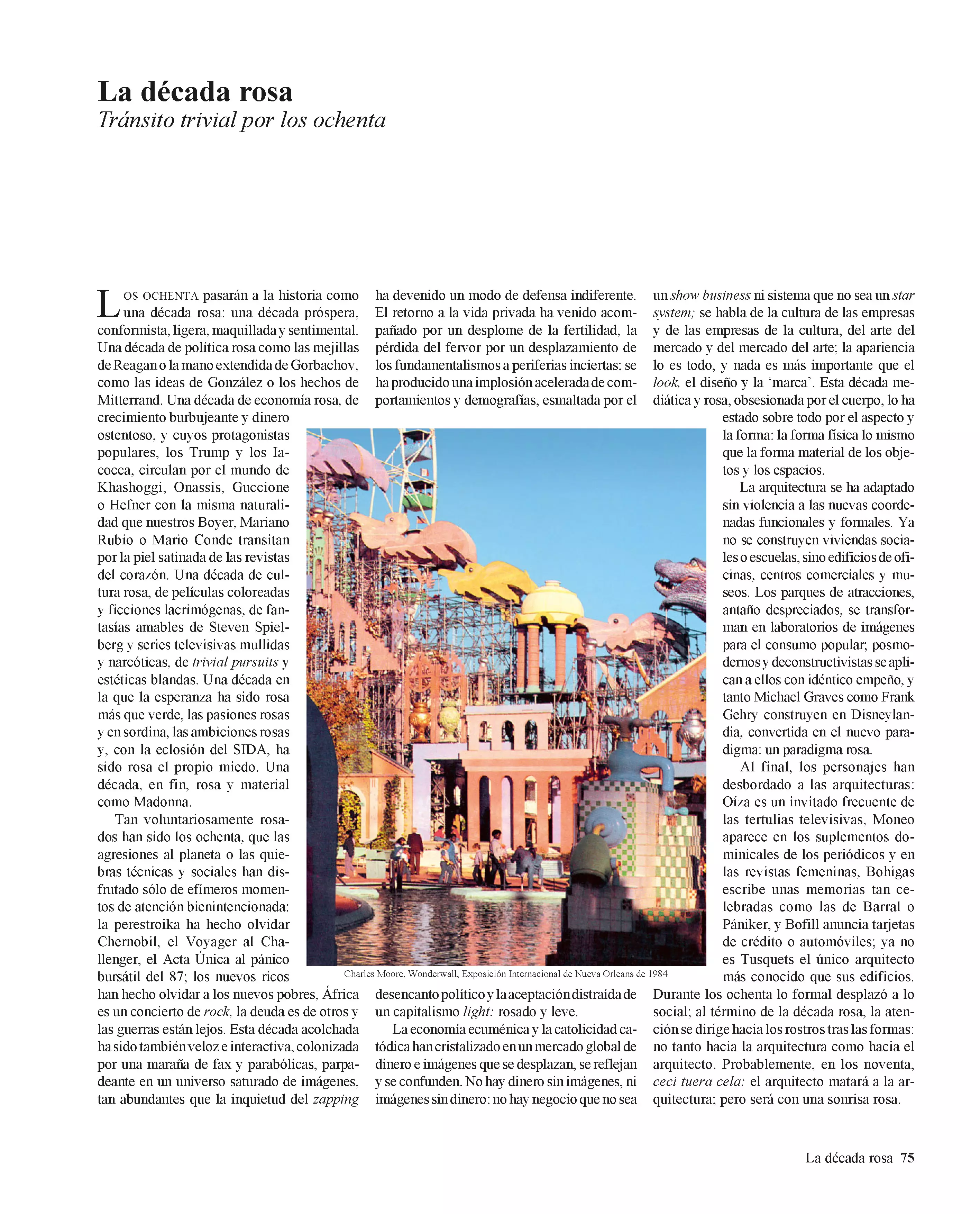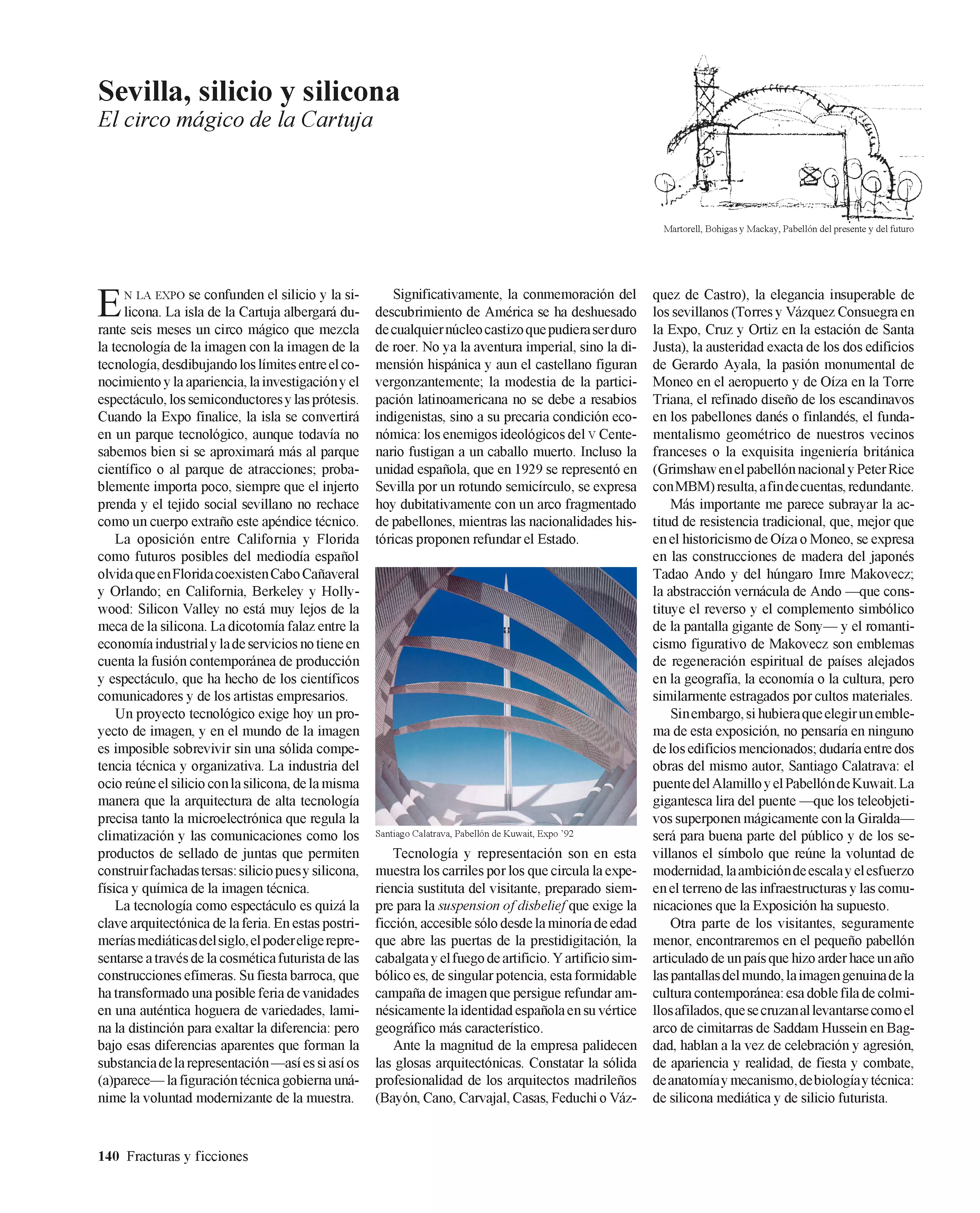 With the two volumes of Las grandes esperanzas (1976-1992), published in Spanish, Luis Fernández-Galiano looks back on a troubled and fertile era that in Spain began with the Transition to democracy and in the world saw the rise of conservative politics with Reagan and Thatcher at the helm, to last until the historic rupture that followed the fall of the Berlin Wall and the break-up of the USSR. The first tome, Empeños sostenibles (1976-1984), dissects a period marked by the economic recession and ecological awakening brought on by the petroleum shocks that rocked the planet, matters addressed by two dozen texts on technological alternatives, sustainable construction, and the relationship between architecture and energy. The second volume, Fracturas y ficciones (1985-1992), paints a kaleidoscopic portrait of a halcyon time of prosperity, with special attention reserved for a Spain recently inducted into European institutions, and whose international visibility would culminate with the Olympic Games of Barcelona and the Universal Exposition of Seville, two events that serve as a backdrop for a hundred short articles on architecture, history, art, and society. Characterized by the lucid and informed style of their author, the essays together trace a map of the lights and shadows of those years, offering a critical revisit through the preoccupations and problems which now, more than three decades later, continue to fan the flames of our economic, ecological, and social crises.