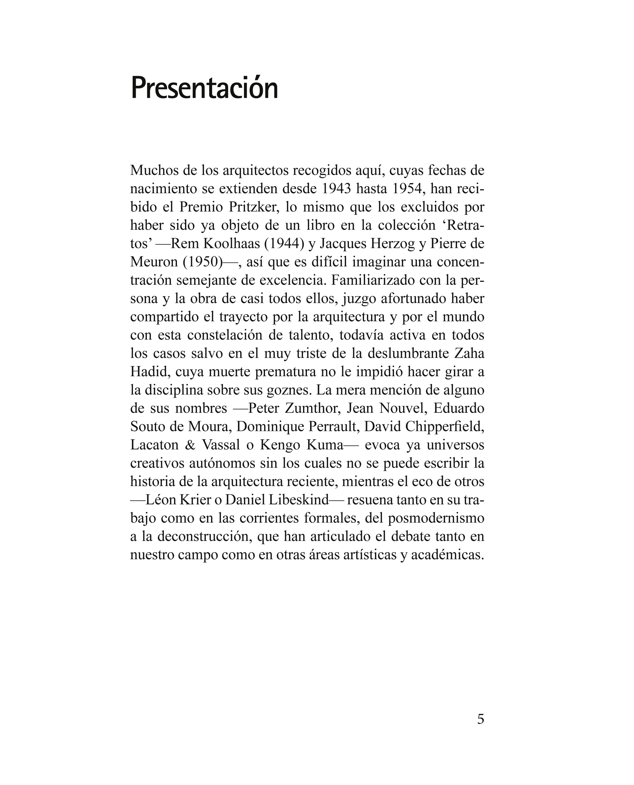 Many of the architects gathered here, born between 1943 and 1954, have received the Pritzker Prize, so it is hard to imagine a similar concentration of excellence. I feel privileged to have shared my journey through architecture and through the world with this assemblage of talent, a constellation still active but for the case, very sadly, of dazzling Zaha Hadid, whose early death, nevertheless, did not prevent her from making the discipline turn on its hinge. The mere mention of some of them – Zumthor, Nouvel, Souto de Moura, Perrault, Chipperfield, Lacaton & Vassal, Juma – already evokes autonomous creative universes without which it would be impossible to write the history of recent architecture, while the echo of others – Léon Krier, Daniel Libeskind – rings as much in their work as in formal currents, from postmodernism to deconstruction, which together have shaped the debate in our field as much as in artistic and academic areas.