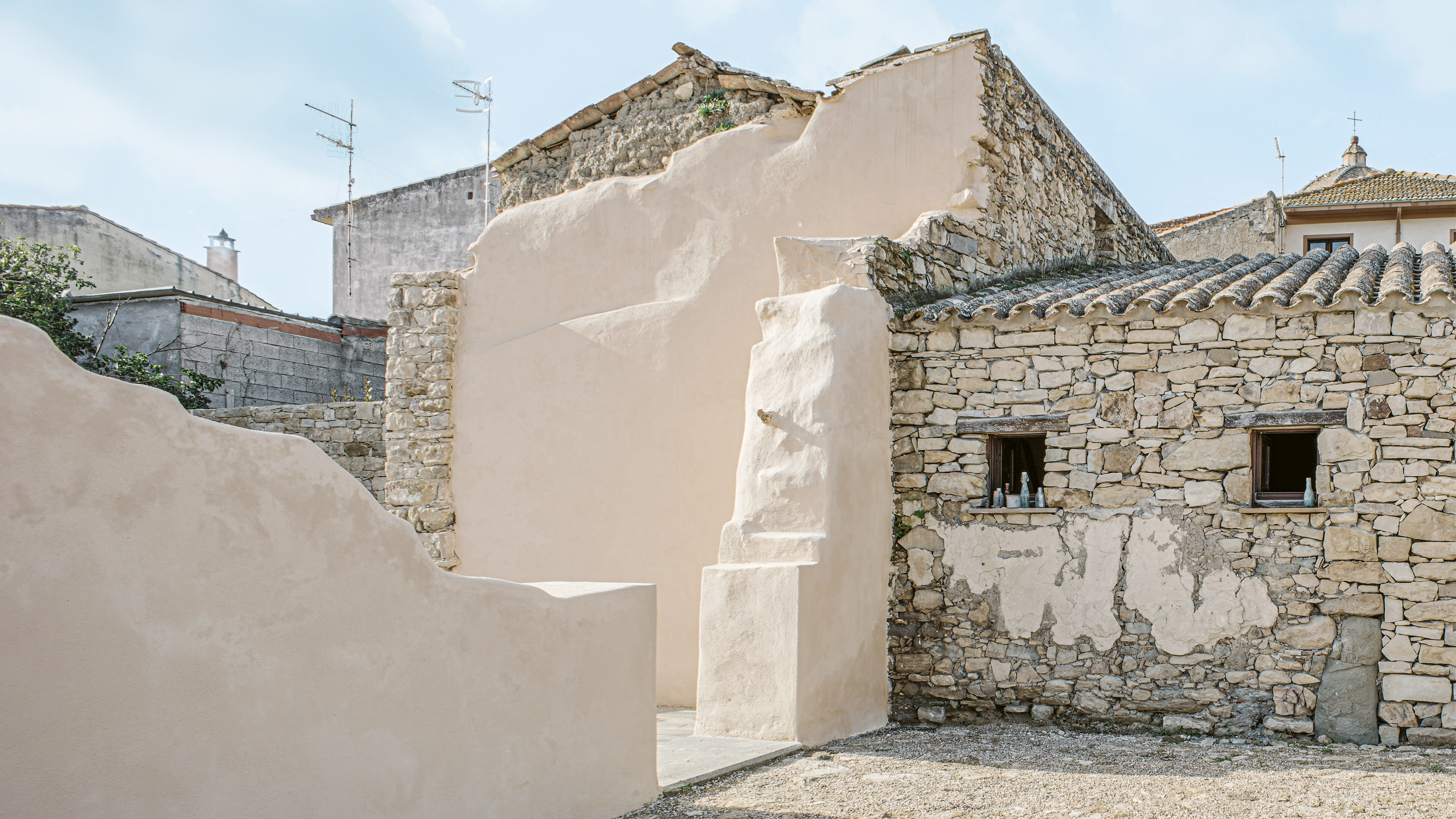 The decay of stonework faces was arrested by clearing them of vegetation and adding a simple lime-based plaster as typical of local construction as the traditional impedrau applied on the ground.