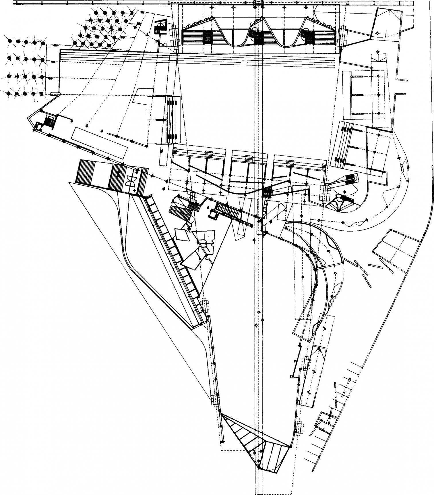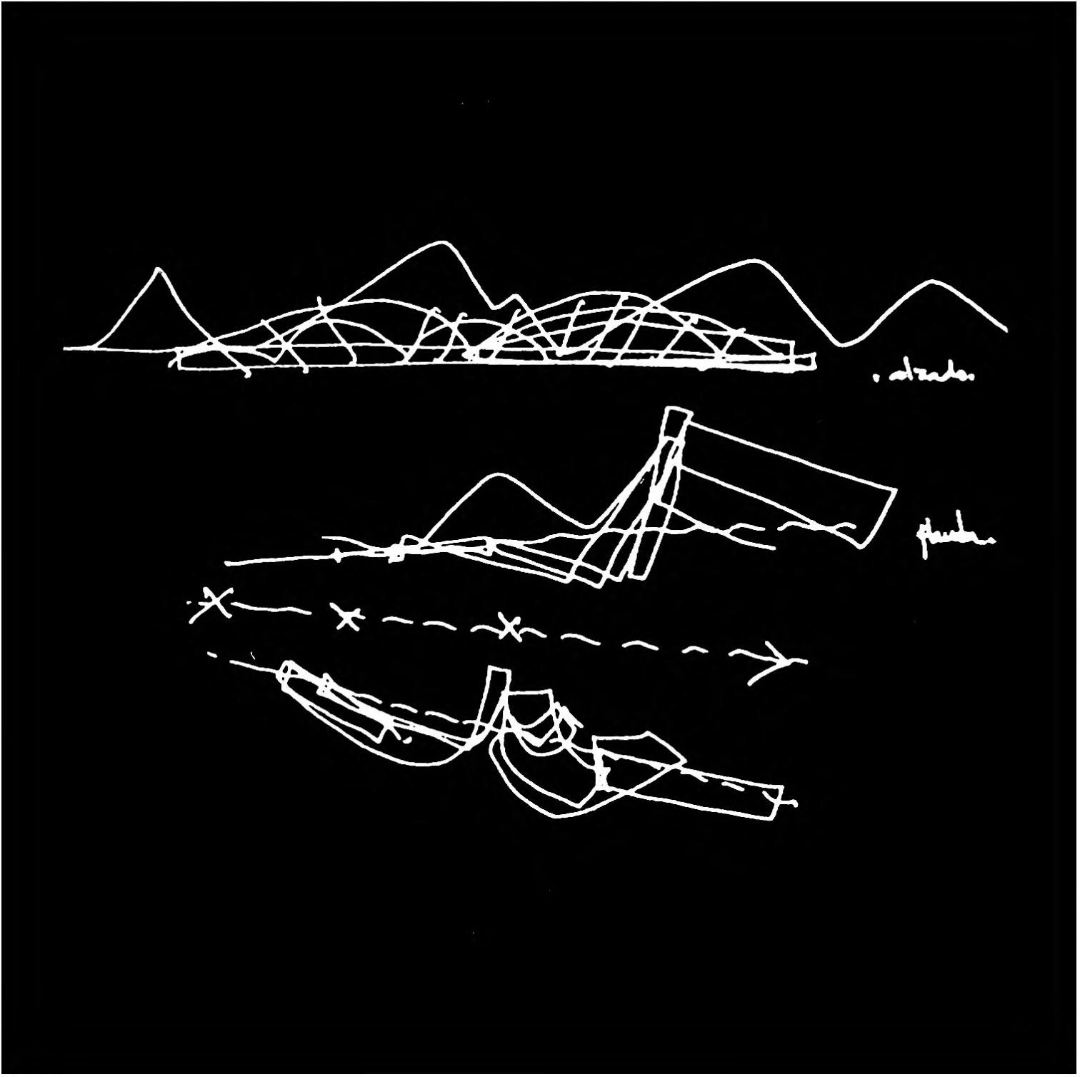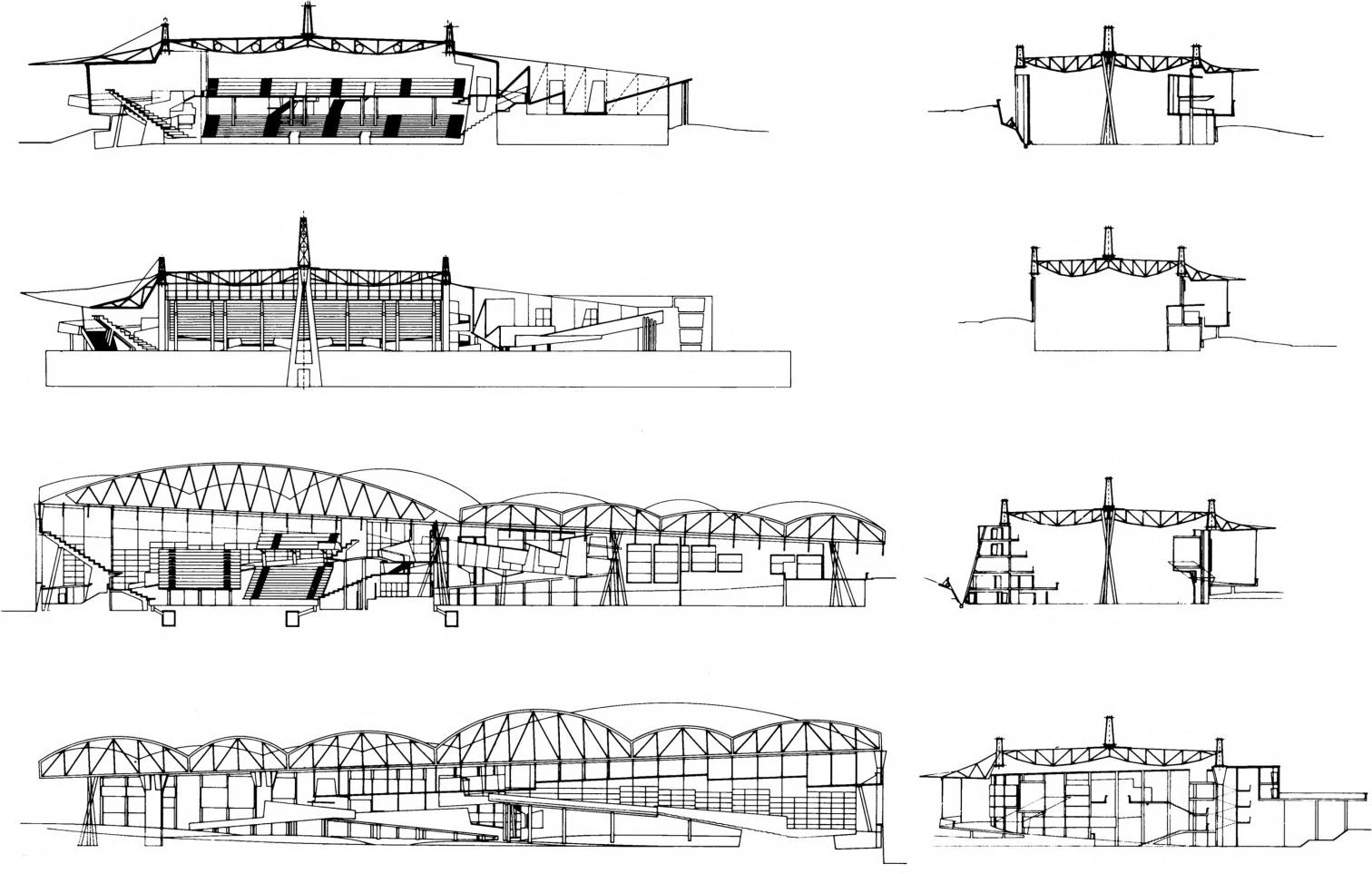 And to understand how this happens one must pay attention to the main directions of the roof structure, beneath which the route variations are unified. Three trusses cover the building lengthwise without necessarily making its components stand out. They in effect alter its upper profile according to the different spans covered, in such a way that the exterior silhouette coincides with the internal routes of the public that moves through the different spaces. Hence, the building's relation to the profile of the mountains and the city beyond is closely linked to the very movement of the public in the interior.