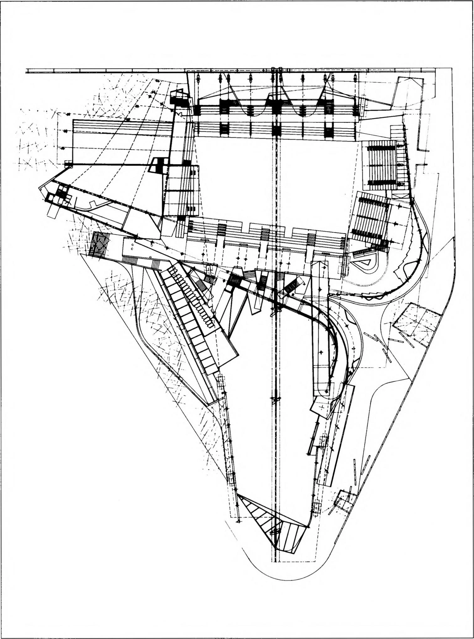 The activities to be contained within, the agglomerations, the diversity and complexity of the functions are all fundamental aspects to be taken into account in any reading of the building. They all help to determine the different routes, which, each with a specific destination in mind, go about excavating and delimiting the interior in a definite way while endeavoring to minimize the building's contact with the street. Precisely because it is designed on different levels, the building projects a series of images toward the exterior, and this is its most immediate contribution the organization of the part of the city it is situated in.
