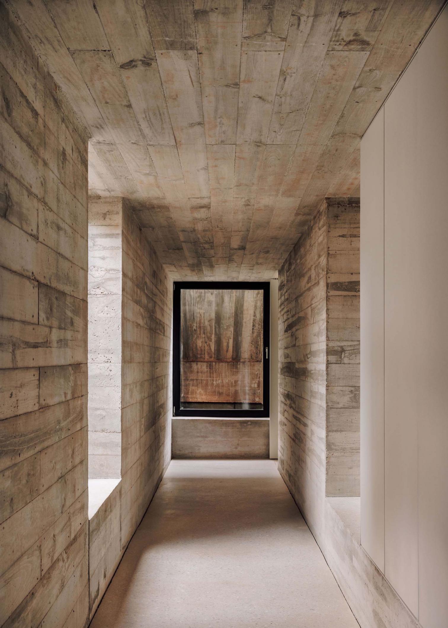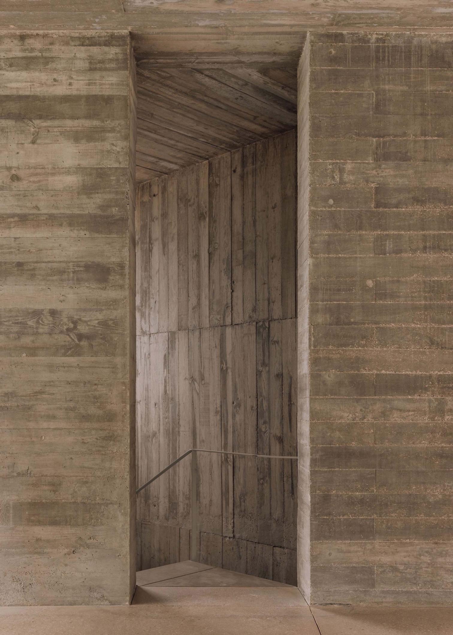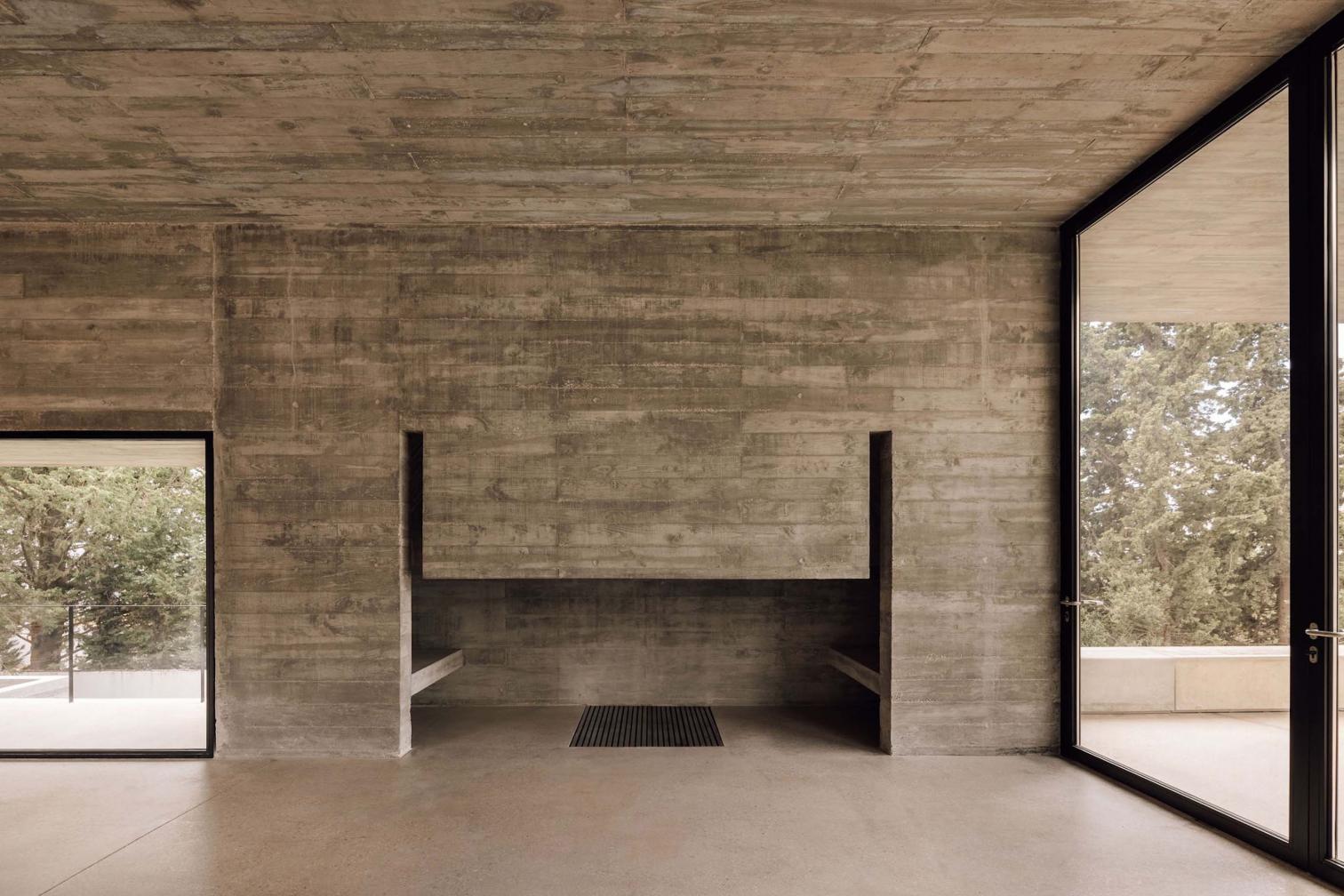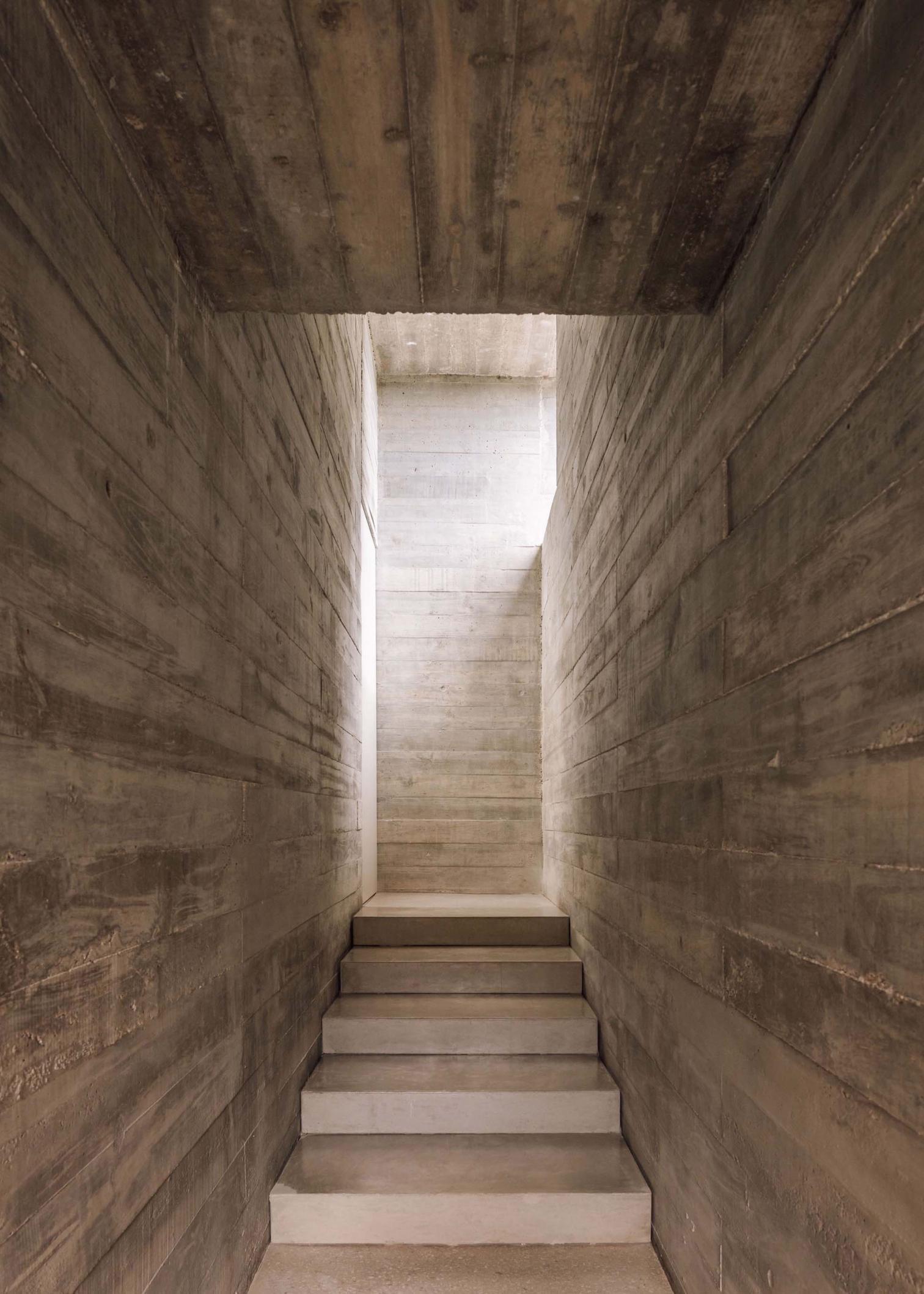 Built high on a hill near the town of Santa Bárbara de Nexe, this concrete house fuses with nature while evoking the image of an old ruin. To make the most of views, the main livable zones are placed in the upper level, a 385-square-meter space.