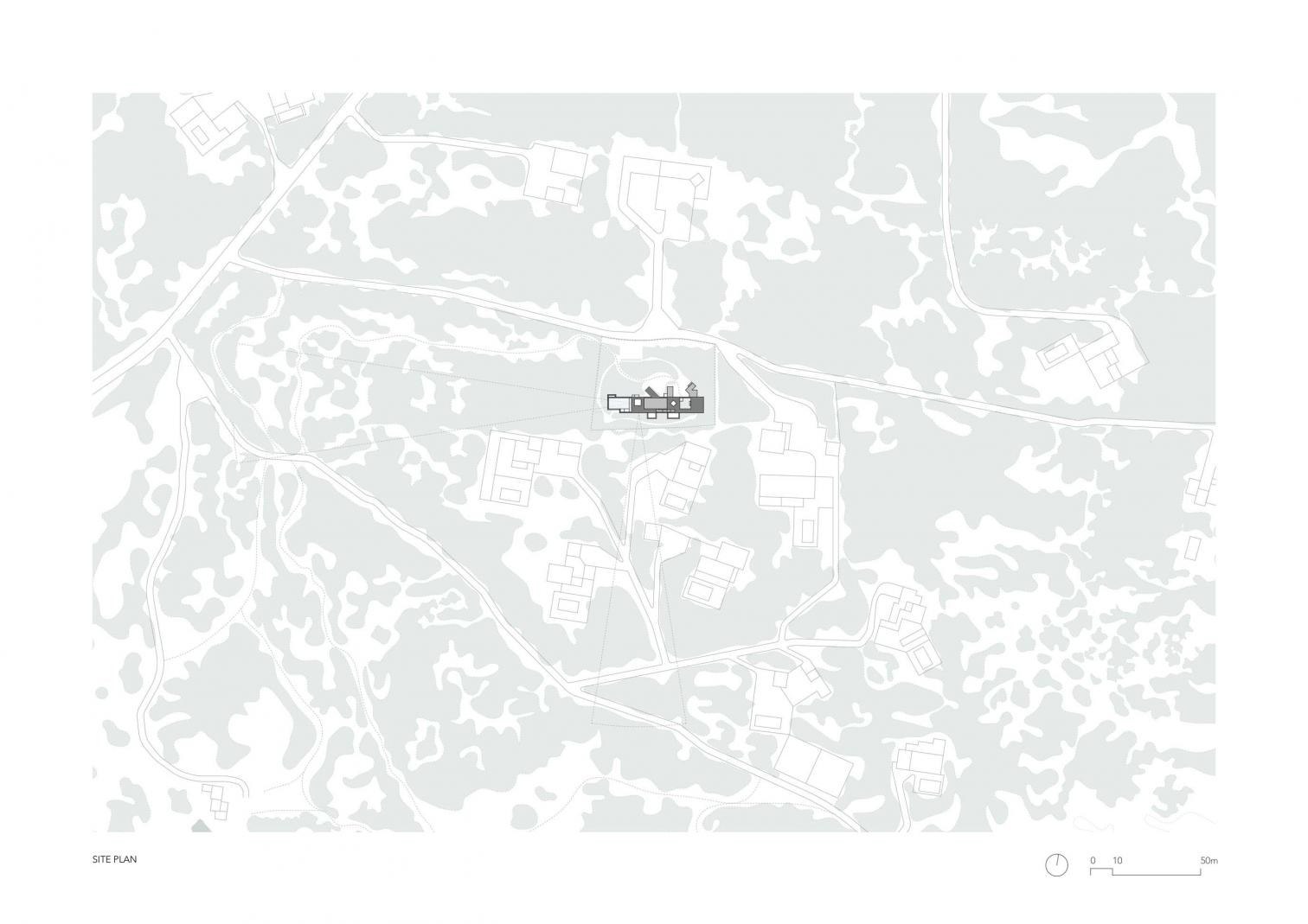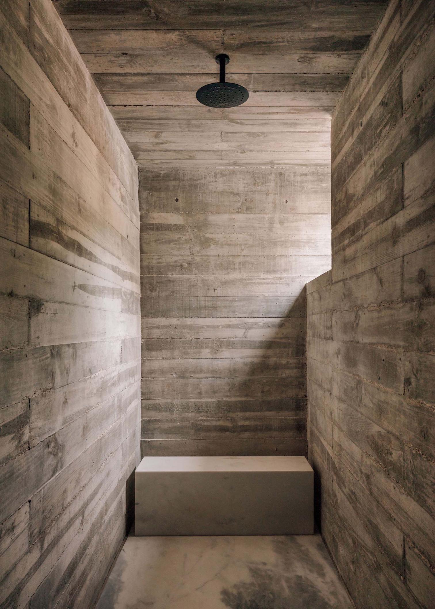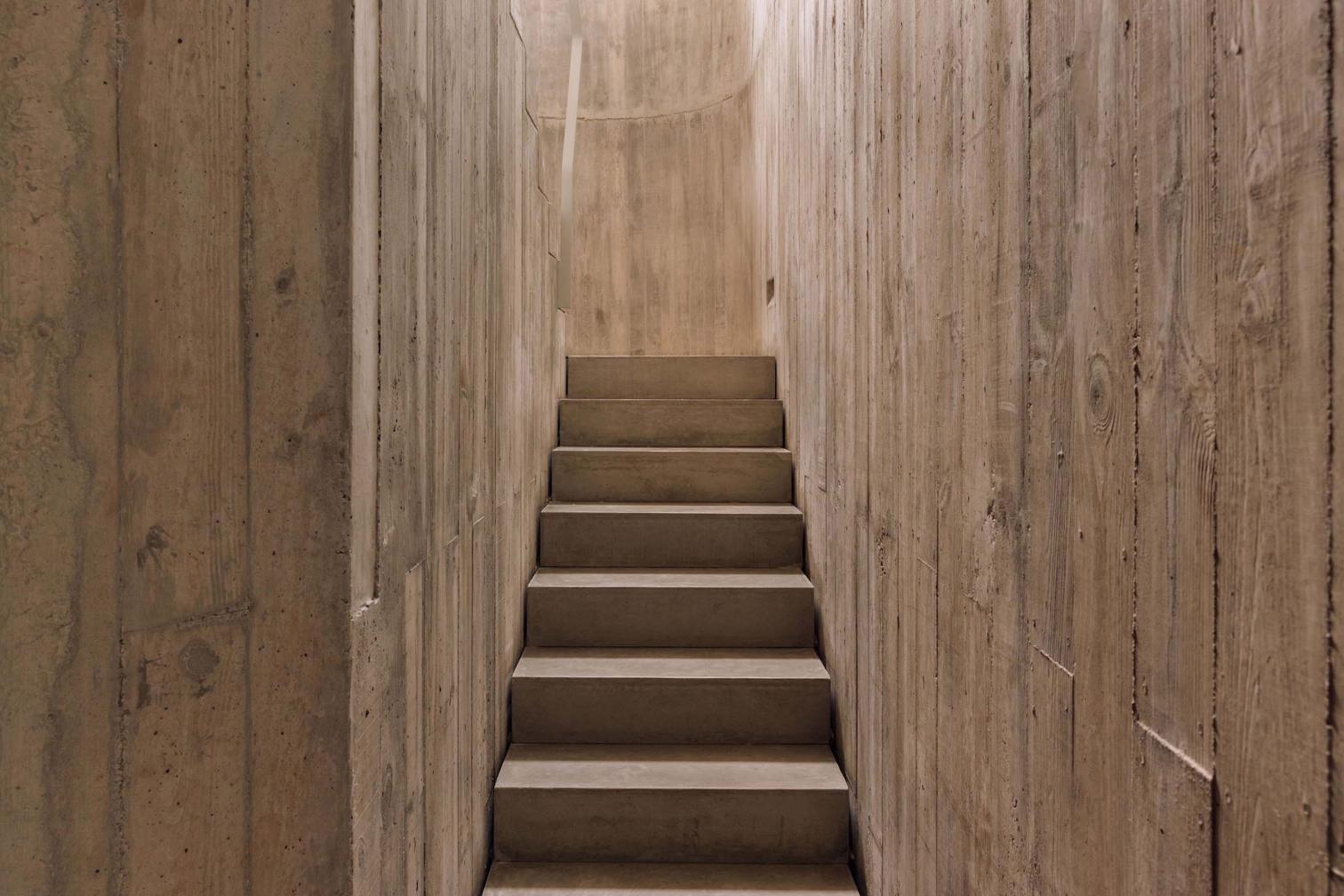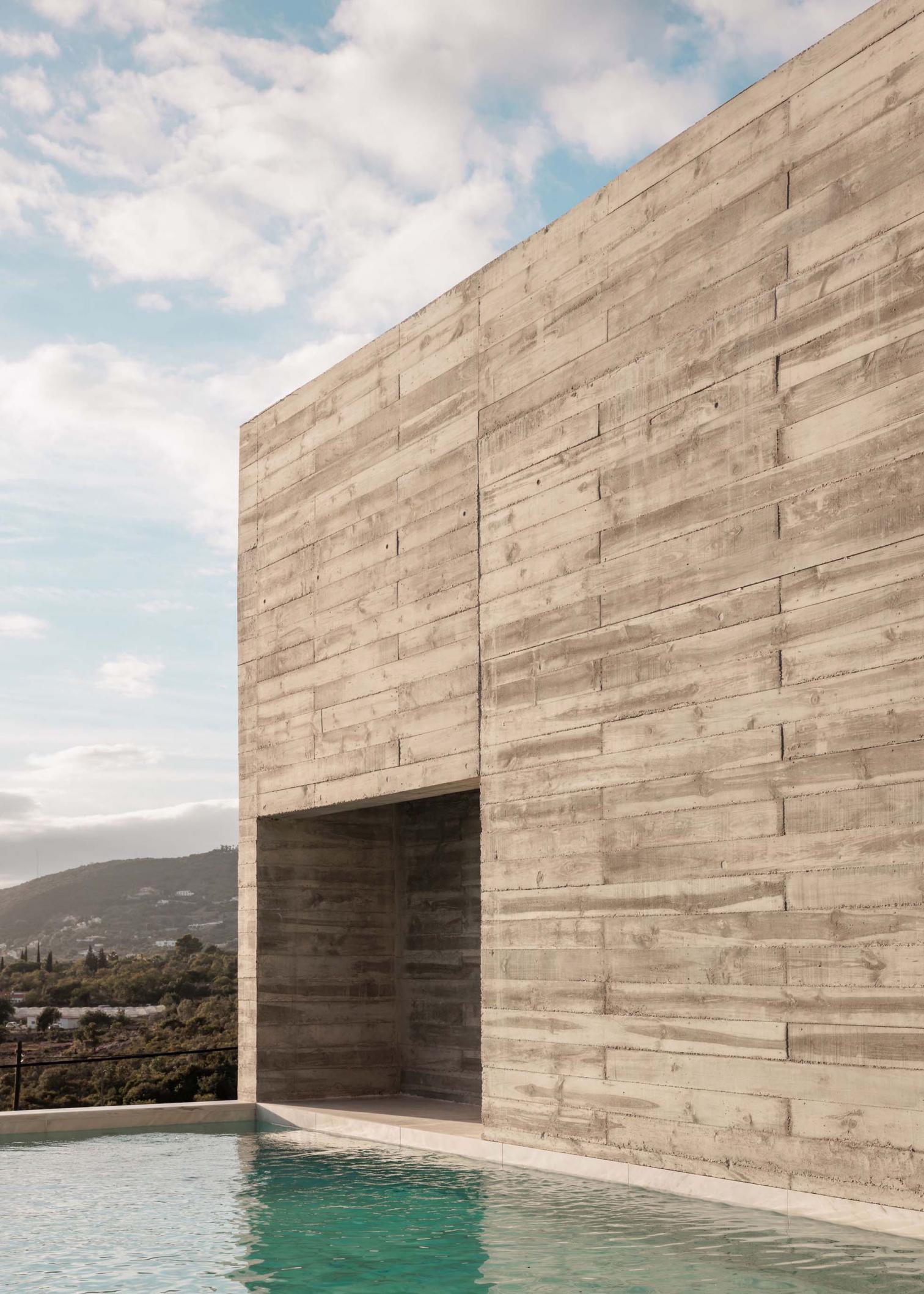 Built high on a hill near the town of Santa Bárbara de Nexe, this concrete house fuses with nature while evoking the image of an old ruin. To make the most of views, the main livable zones are placed in the upper level, a 385-square-meter space.