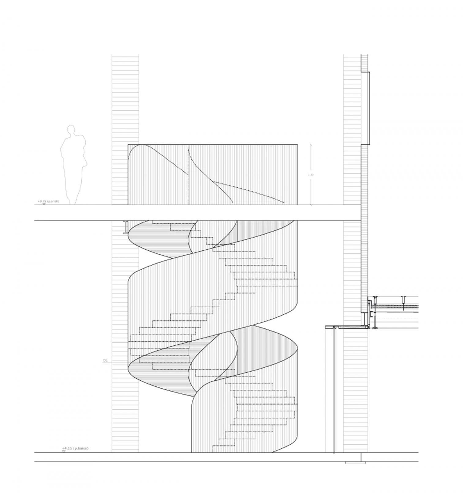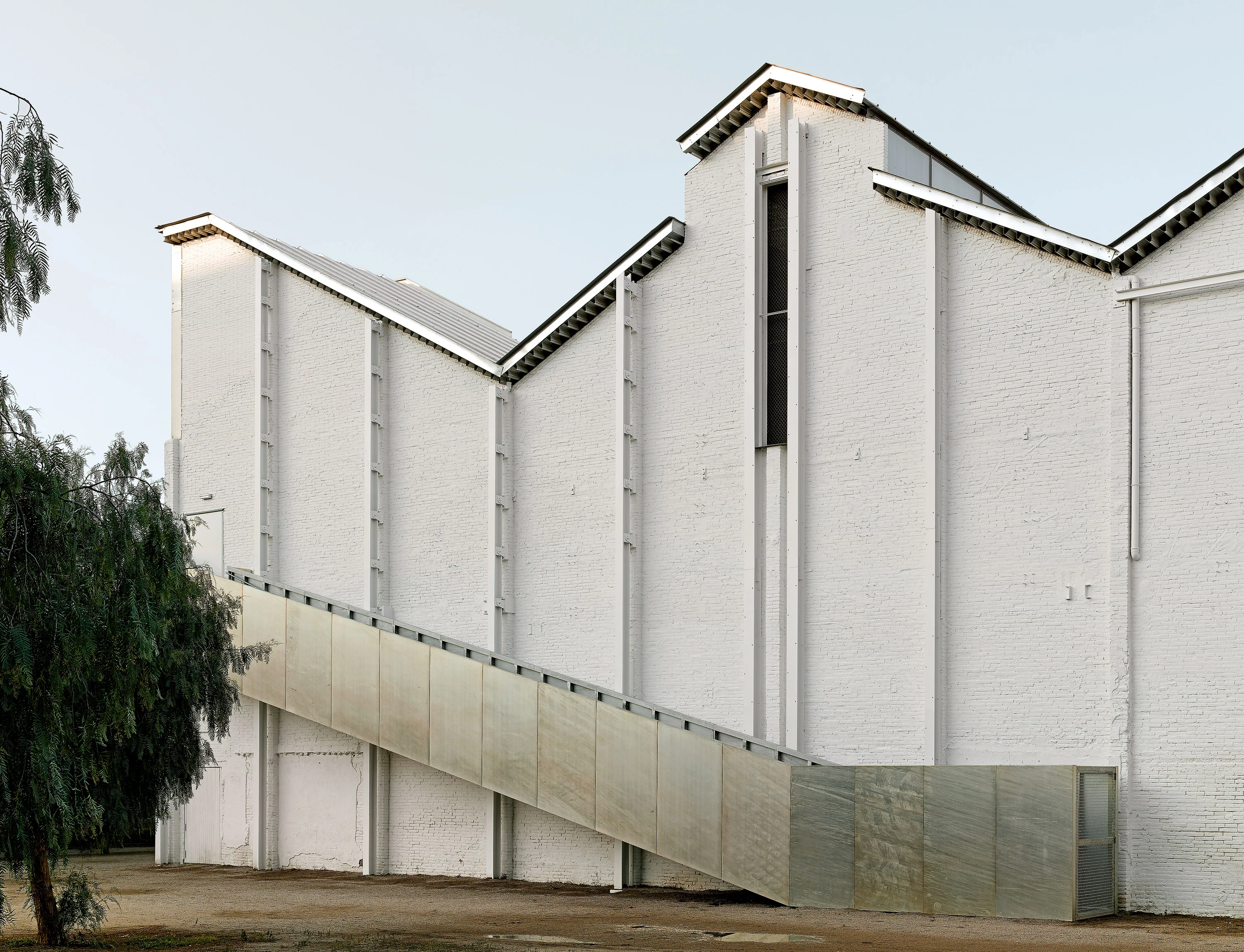 All this builds a piece halfway between building and pavilion, still without air conditioning and in constant renewal, for all sorts of cultural activities, proving the value of architectural recycling. A part of the intervention blends with the original building; some handrails, one of the footbridges, the roof, the pavement, and the window protections. Others instead assert their presence in the unique gold-plated galvanized steel that builds the stairs, the second footbridge, the elevator, and the porch, with the objective of becoming the figure against that industrial backrop they however belong to.