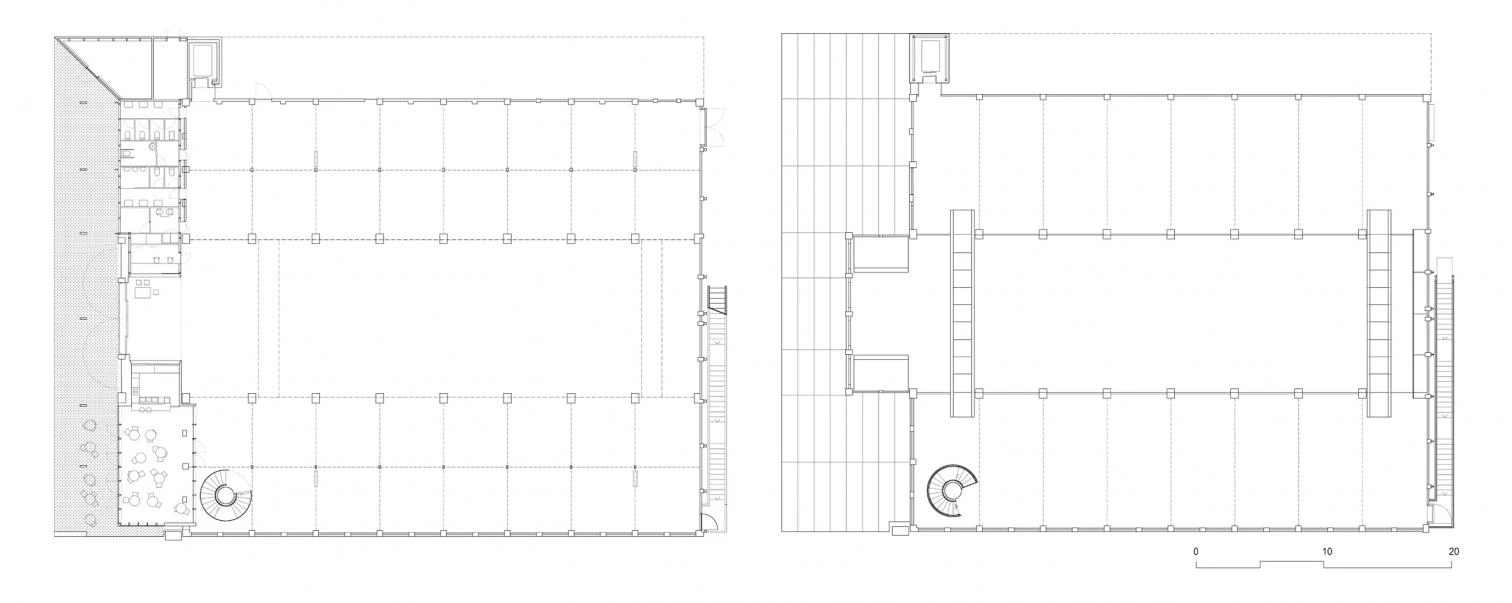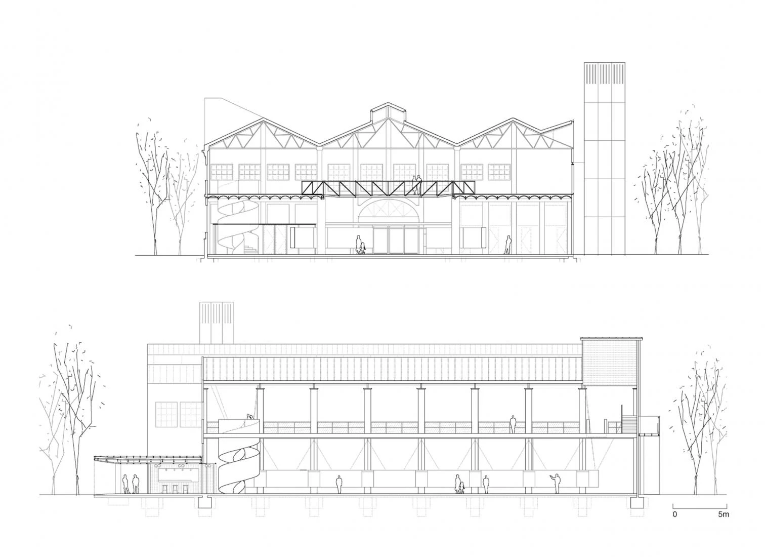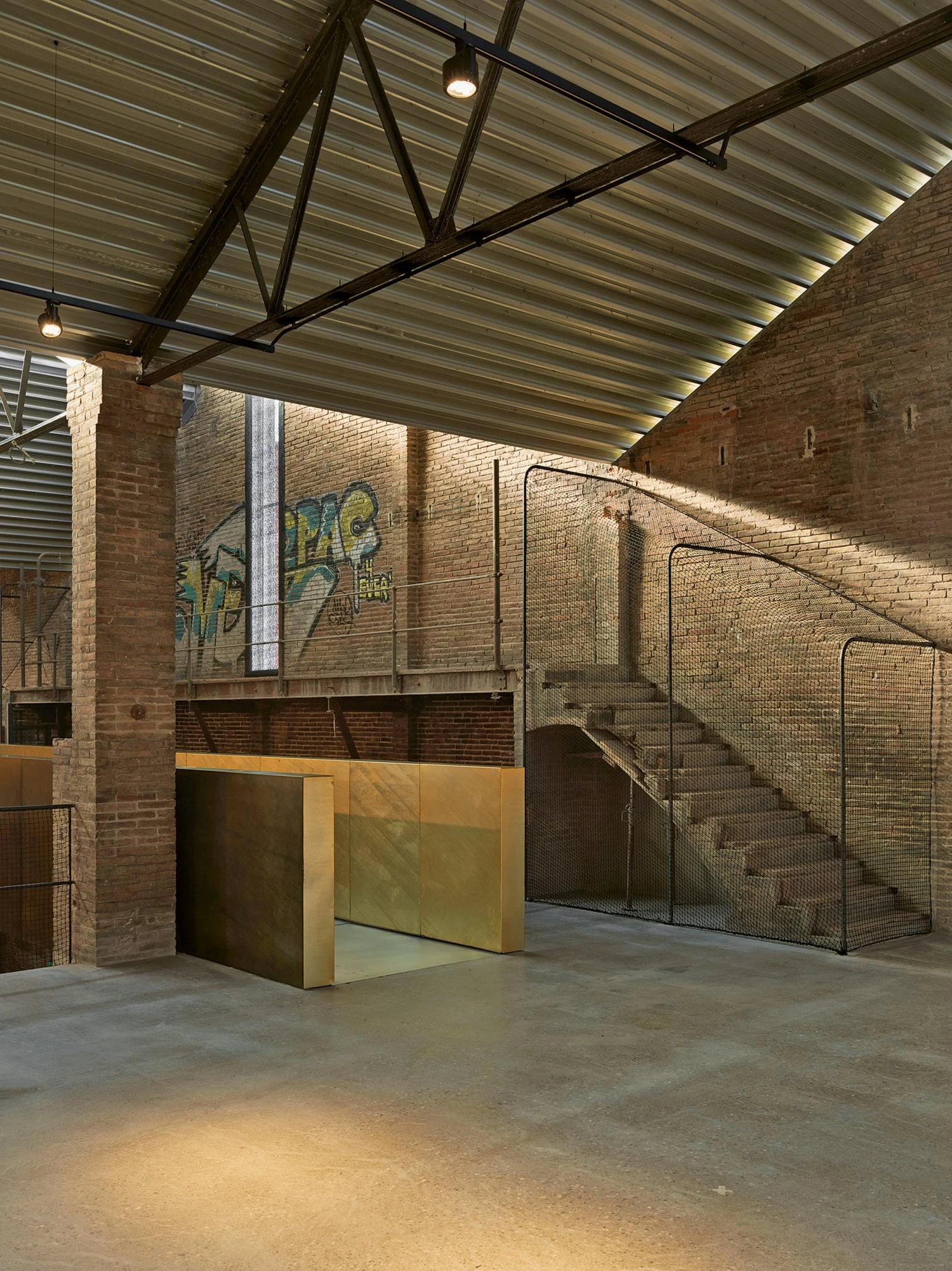 In the interior of the warehouse, space is freed up to achieve greater flexibility and freedom for exhibitions, highlighting the brick textures and the rich spaces of the old factory, dating from the early 20th century.