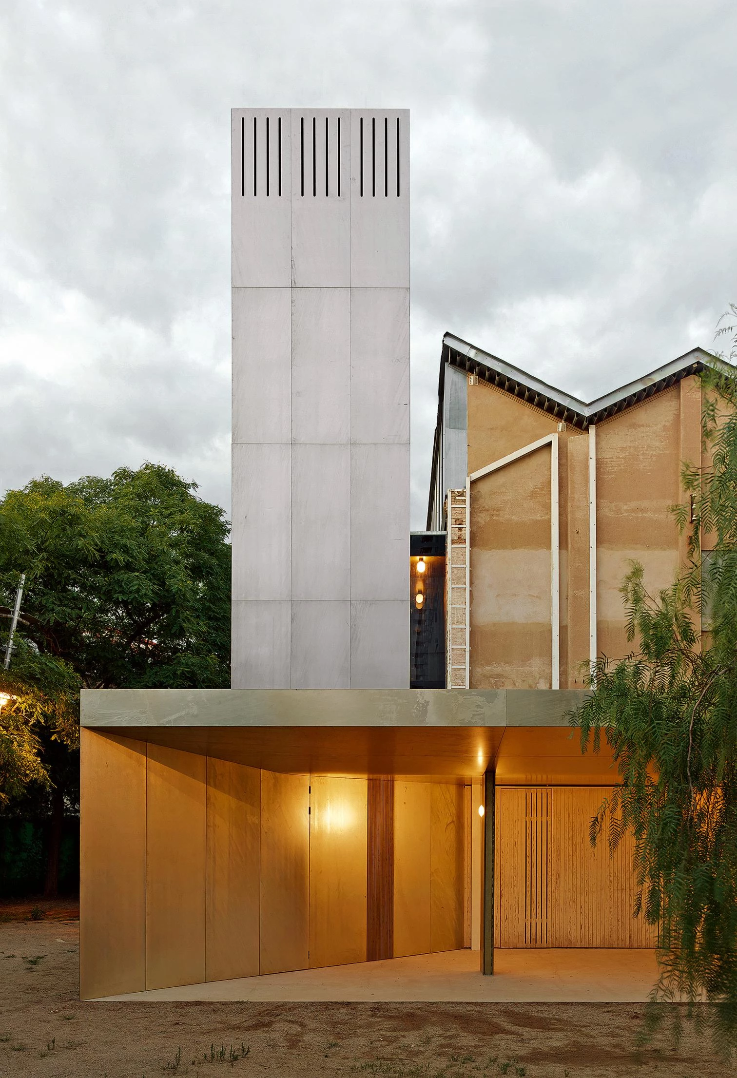 The project is based on the addition of the minimum essential pieces needed, built in a single golden material that adds a new layer to the ensemble. A porch takes up the full length of the main facade.